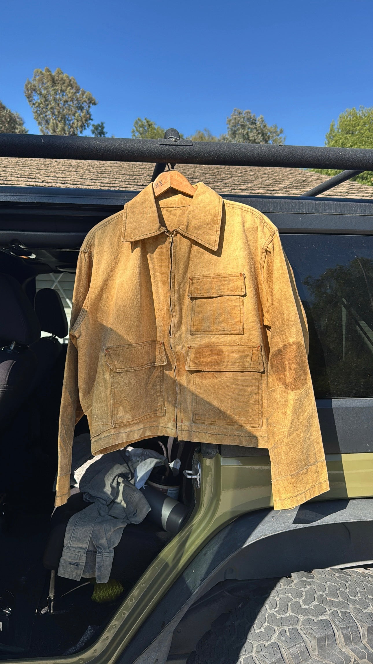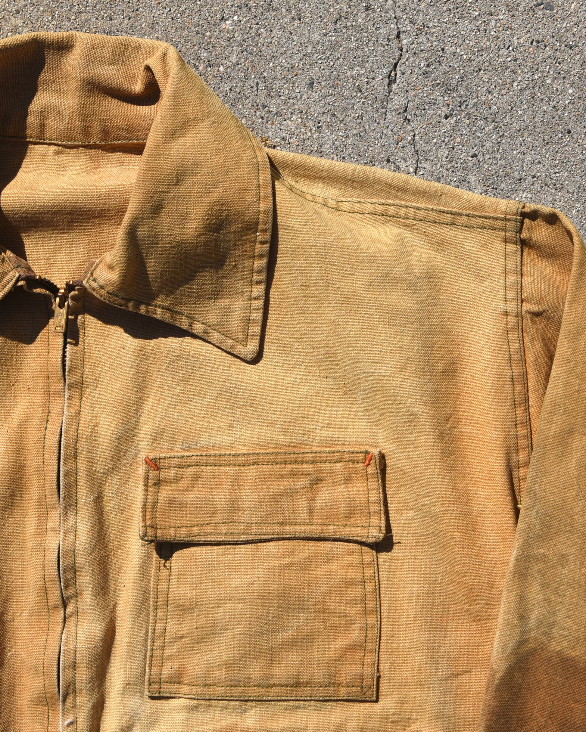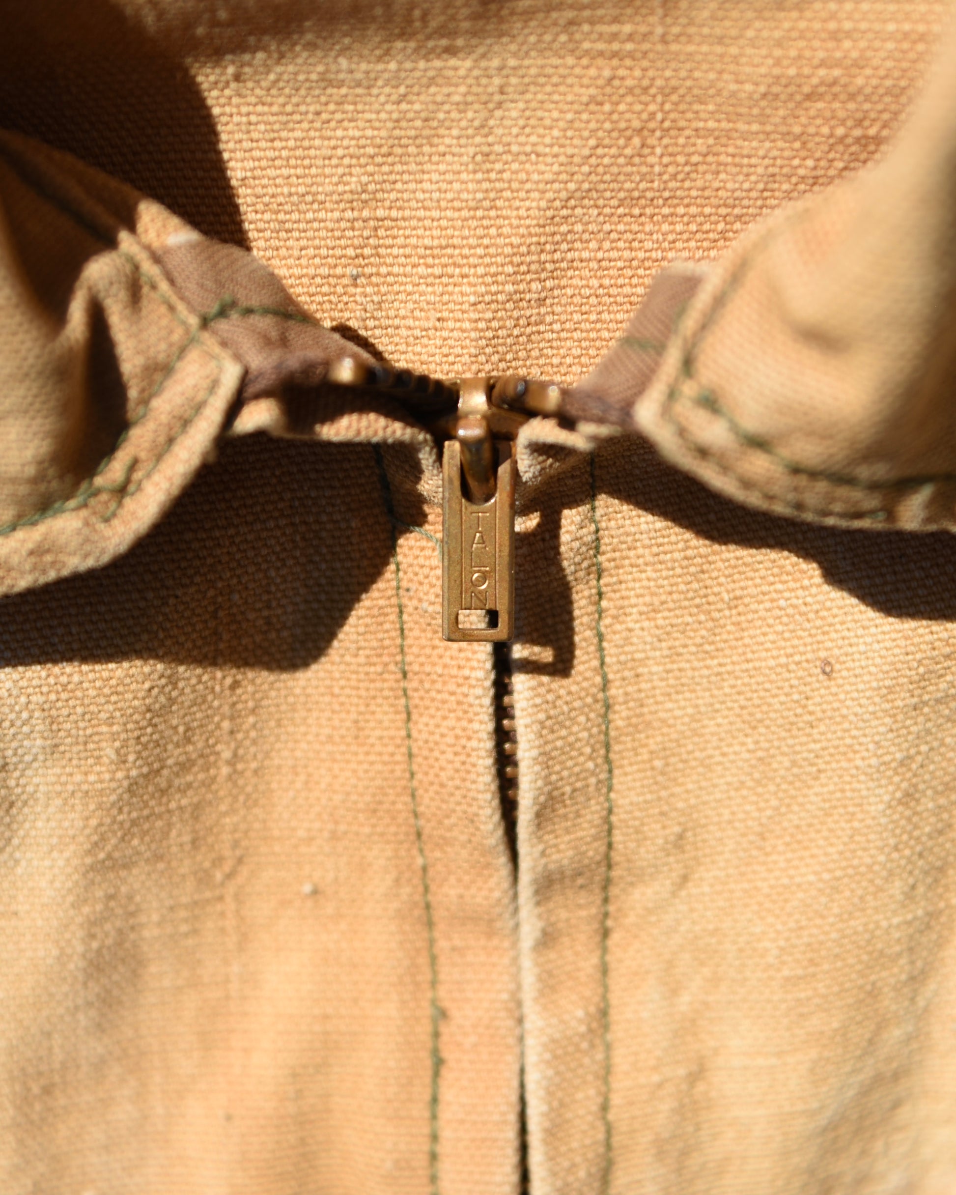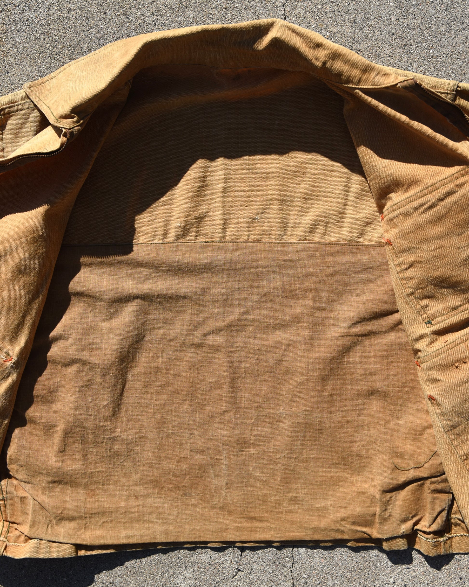 1940s Canvas Hunting Jacket. Incredible true vintage piece. Very boxy fit. Minor signs of wear throughout but nothing major. Original Talon zipper, works perfectly. Buckle back. Fits like a large