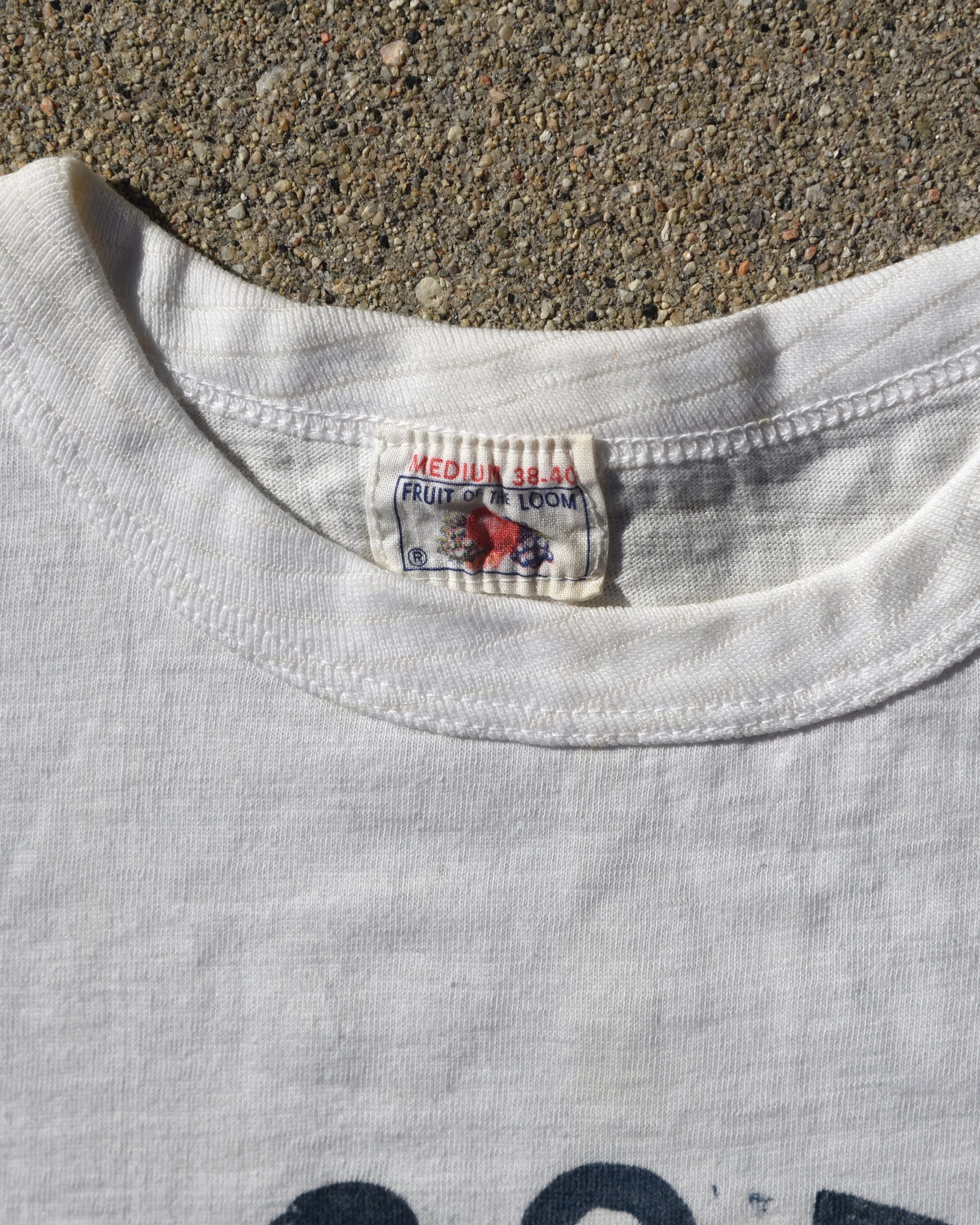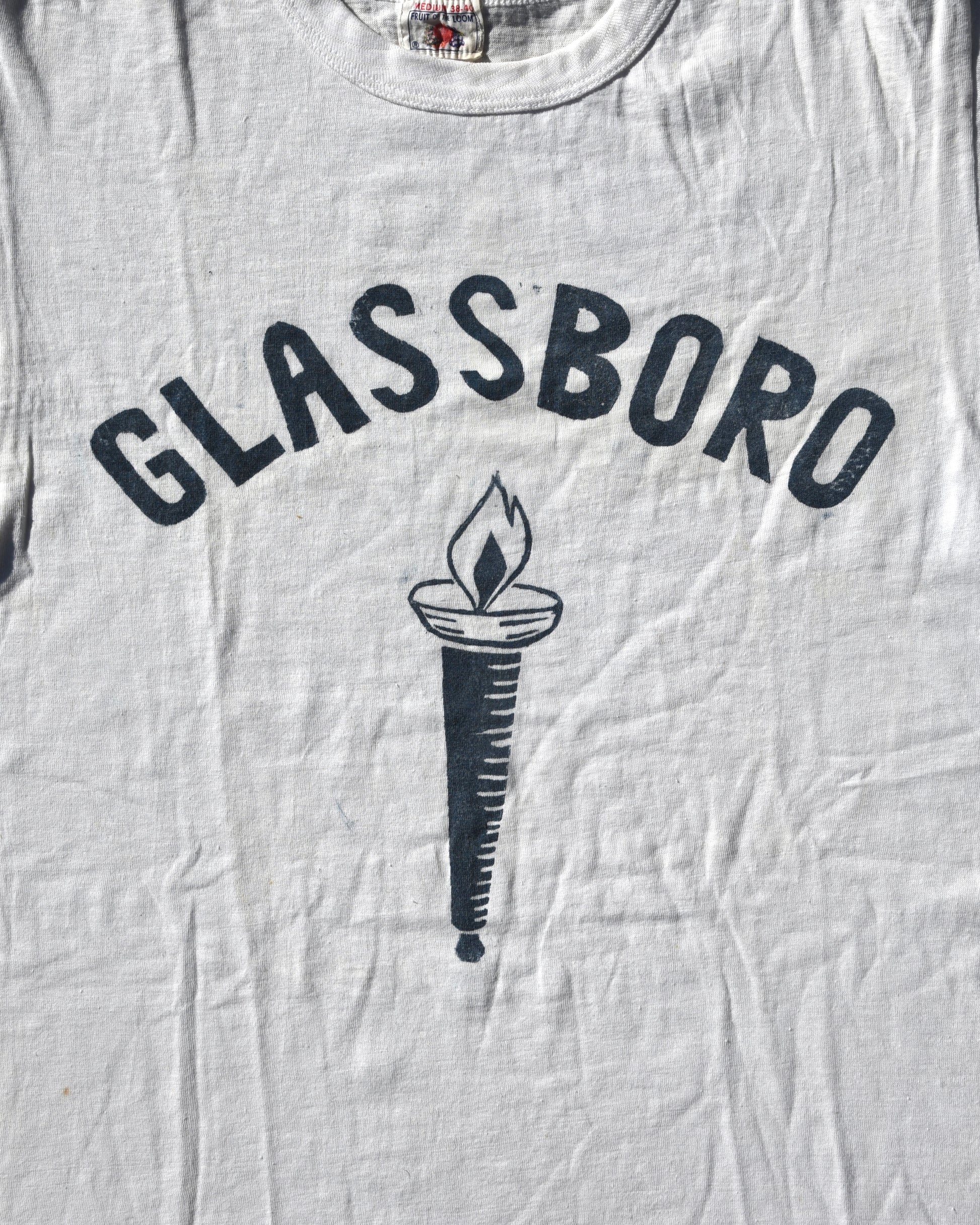 True vintage 1940s Fruit of The Loom Glassboro Tshirt. In great condition for its age. Tagged size medium