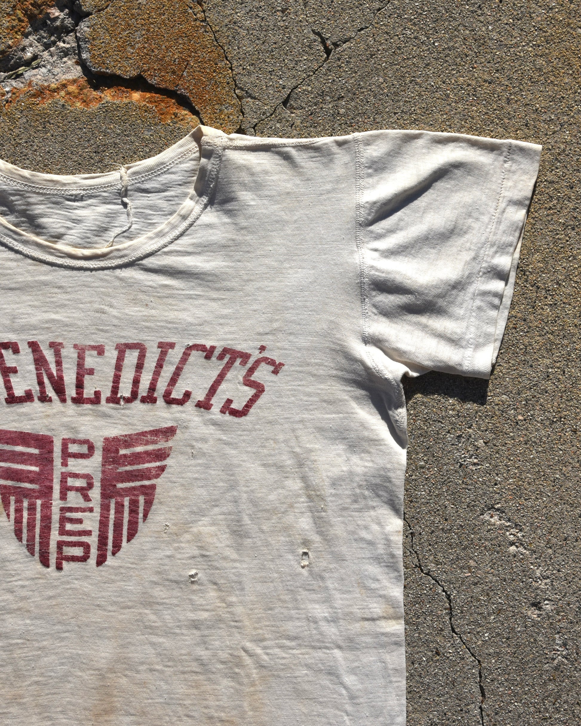 True vintage 1940s St Benedict’s Prep Tshirt. Signs of wear consistent with age throughout. Fits like a medium
