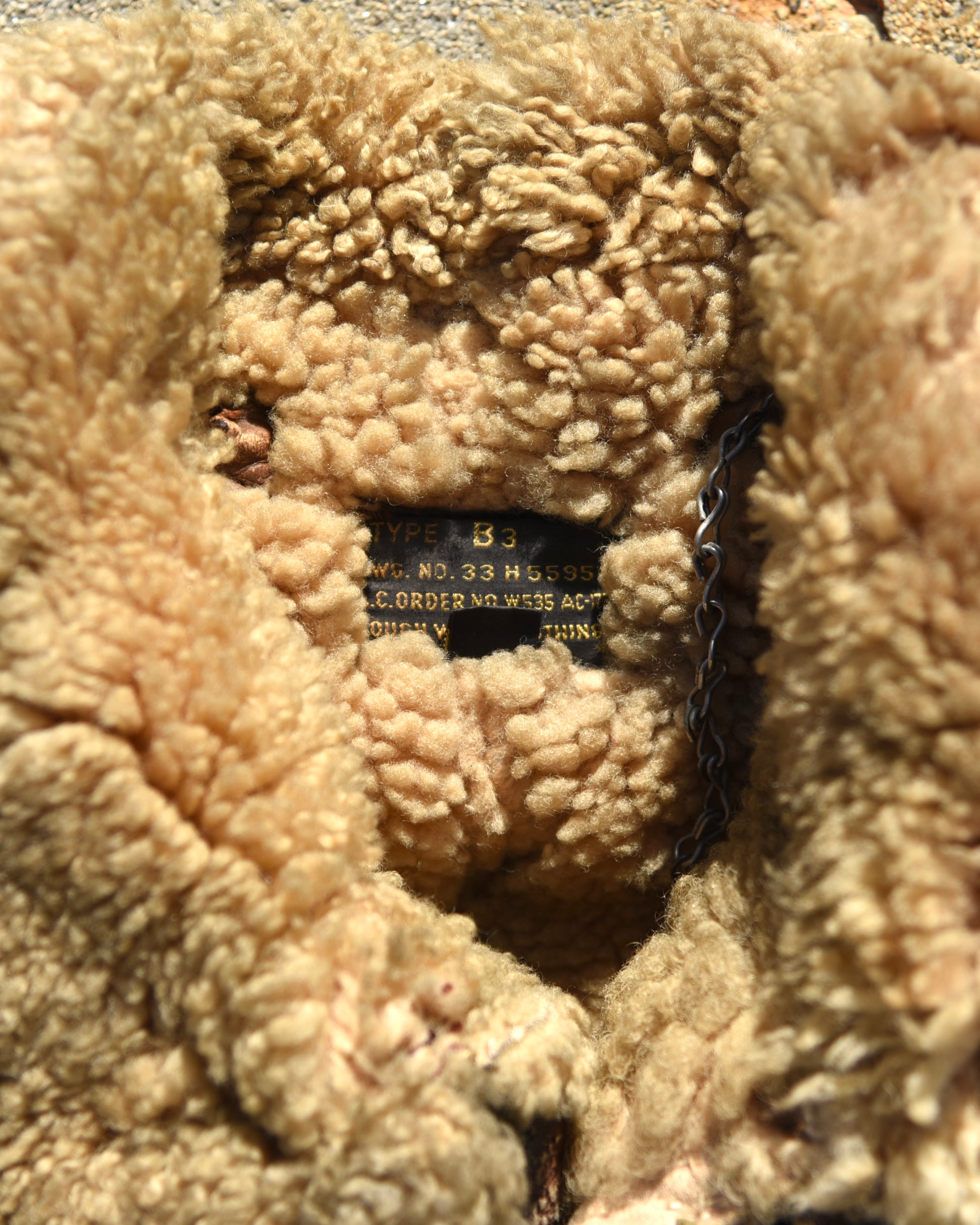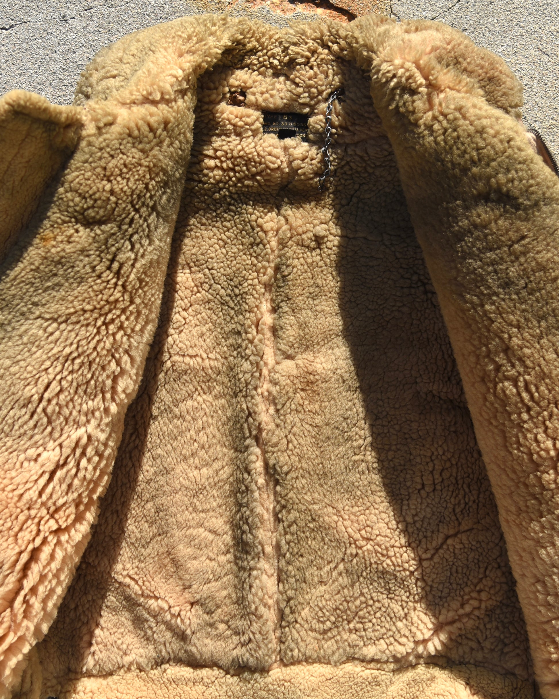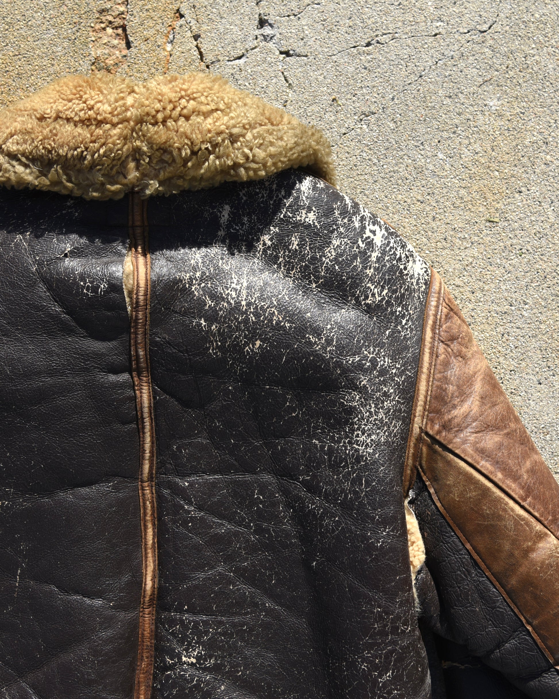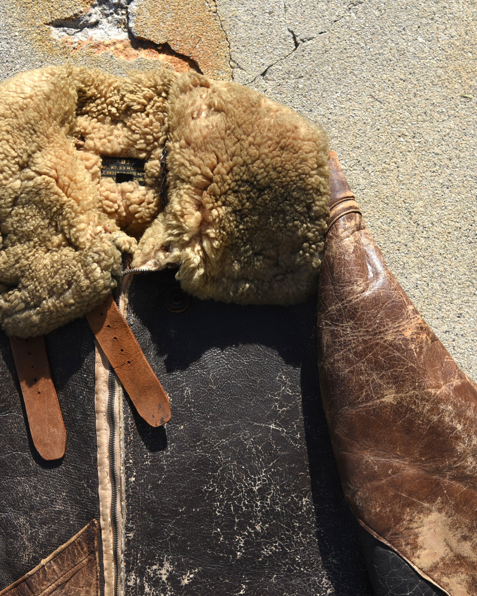 True vintage 1940s U.S. Army B3 Shearling Leather Jacket. Signs of wear consistent with age throughout. Zipper and hardware all works. Tagged size 38, fits like a medium