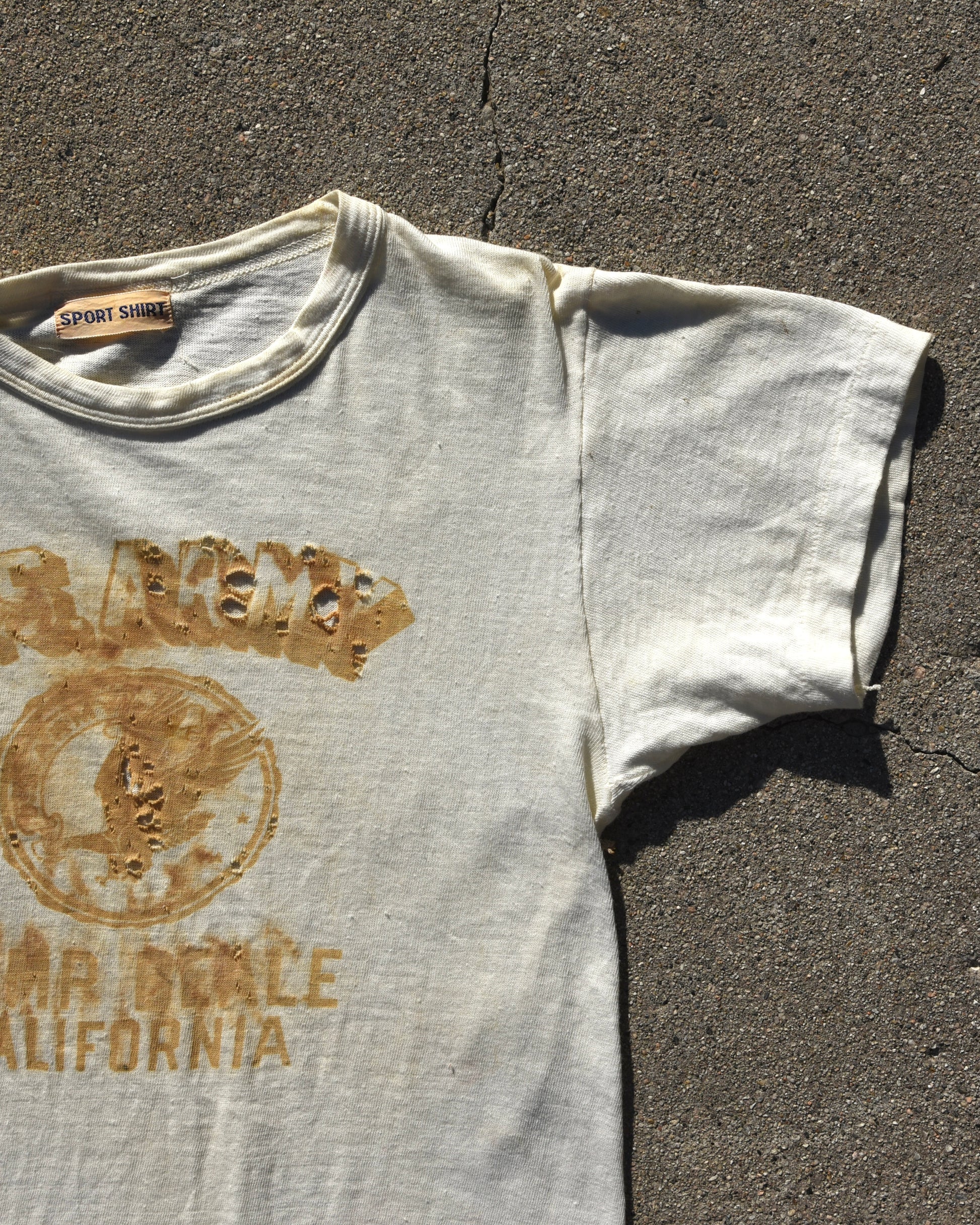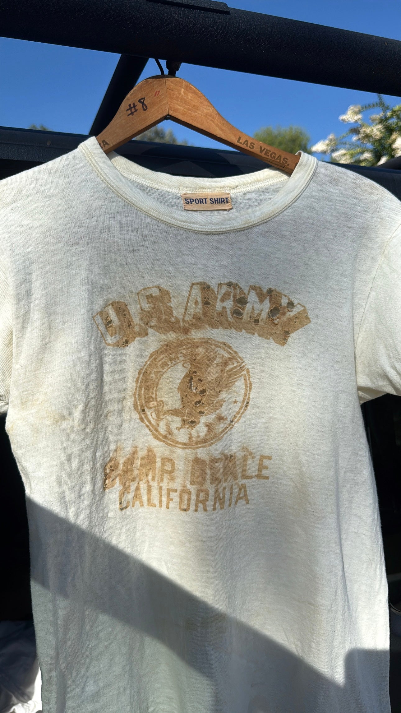 True vintage 1940s U.S. Army tshirt. Thrashed and faded perfectly throughout. Fits like a size small