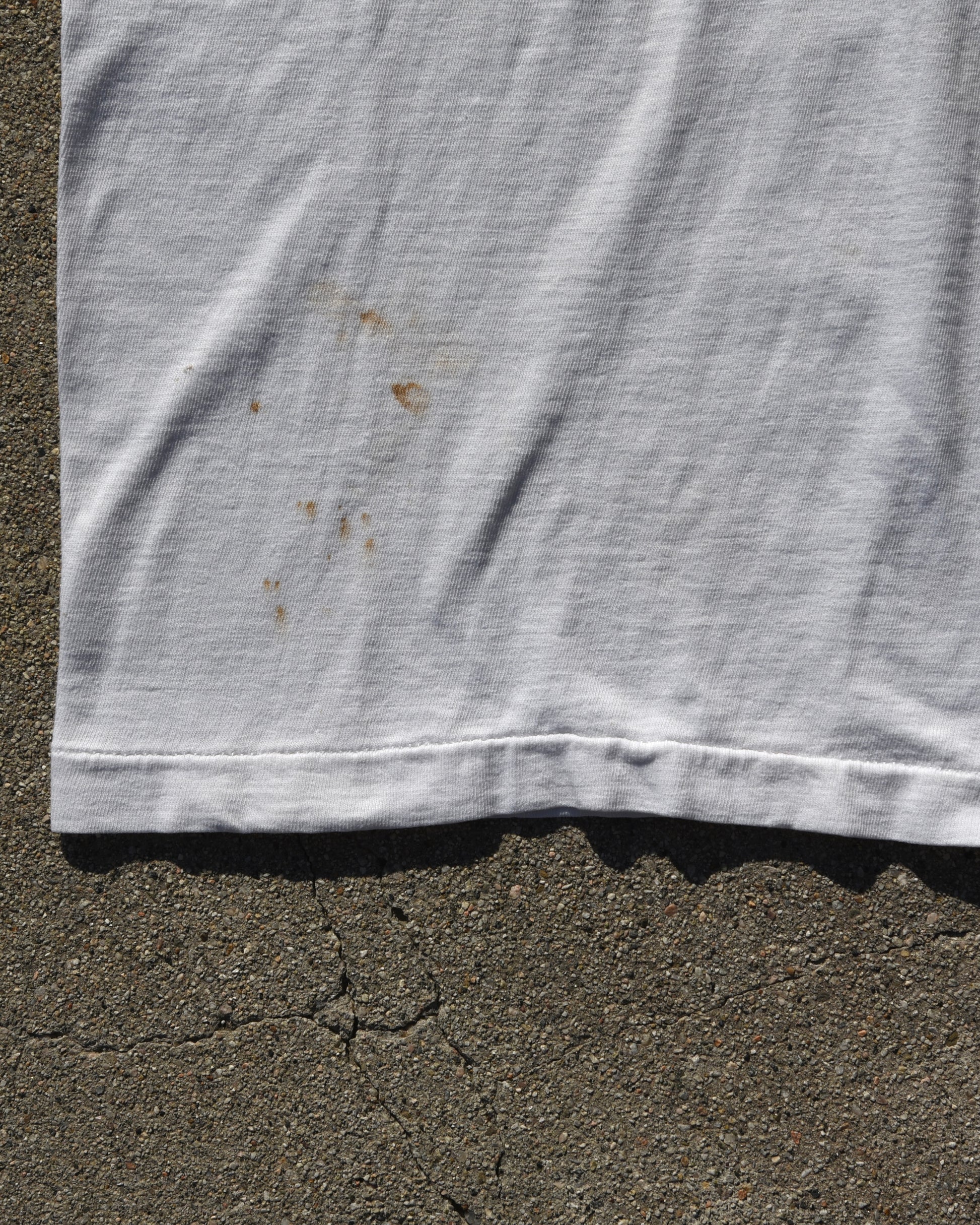 Vintage 1950s Champion Running Man Loyola Academy Phys Ed Tshirt. Has signs of wear and markings throughout. No major holes or tears. On a vintage champion tag size medium