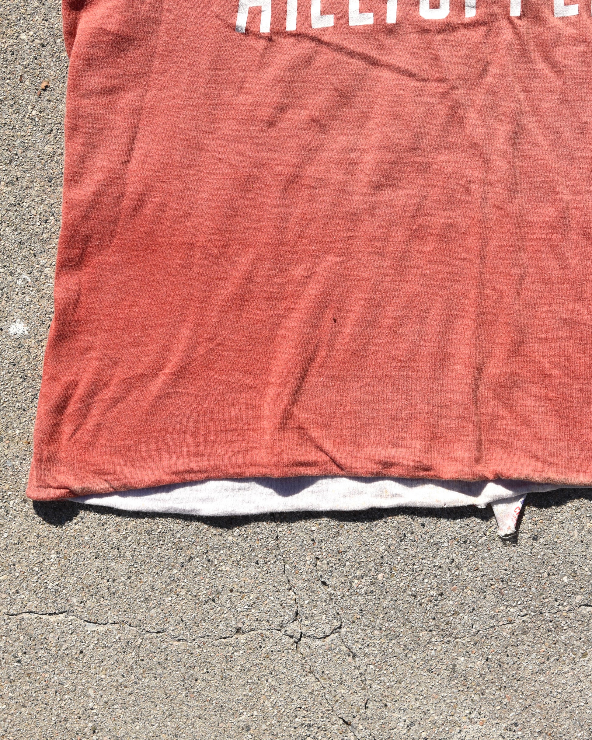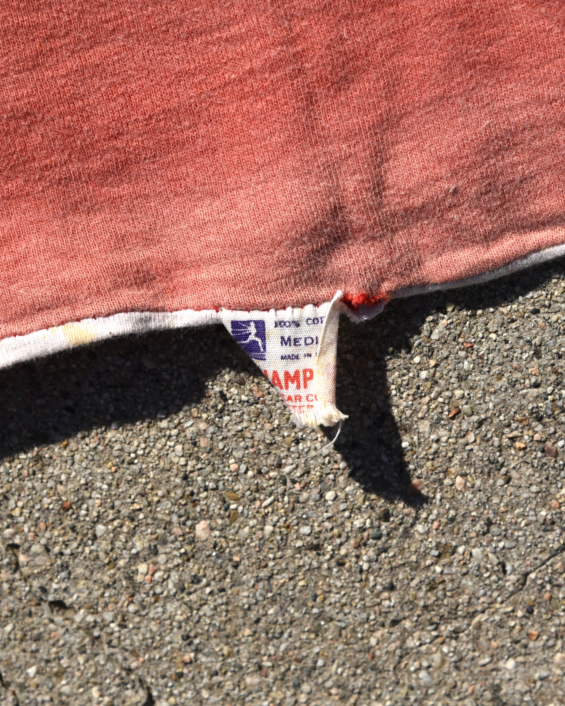 True Vintage 1950s Champion Running Man Double Face Hilltoppers Phys Ed Tshirt. Amazingly sun faded all throughout. Has some minor markings but no major holes. On original 50s champion tag size medium
