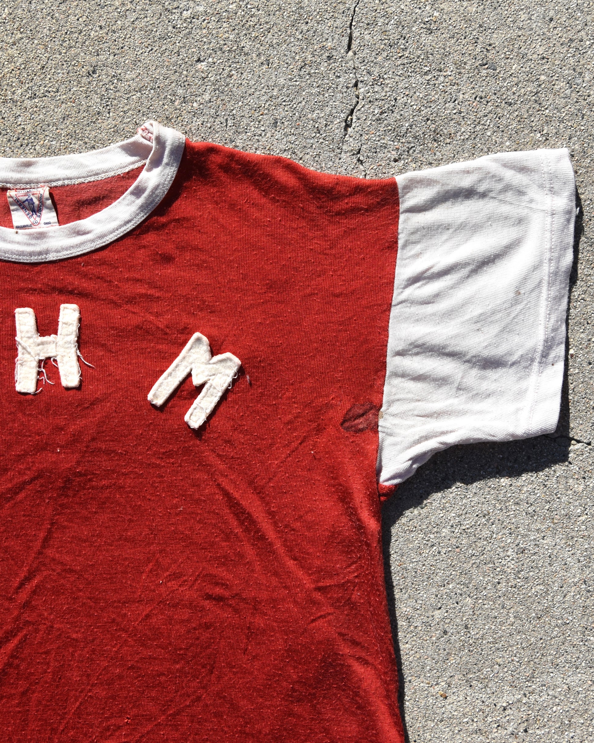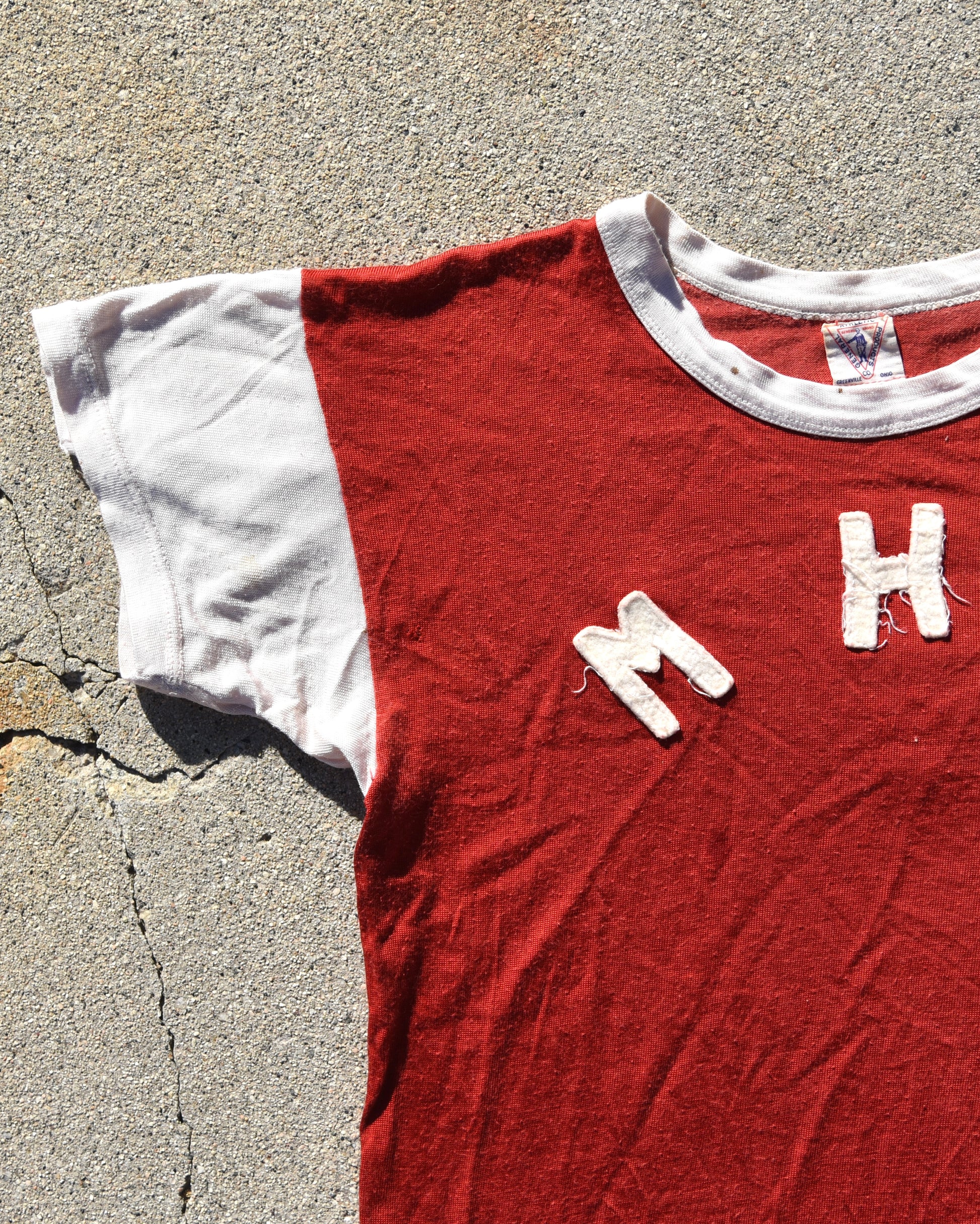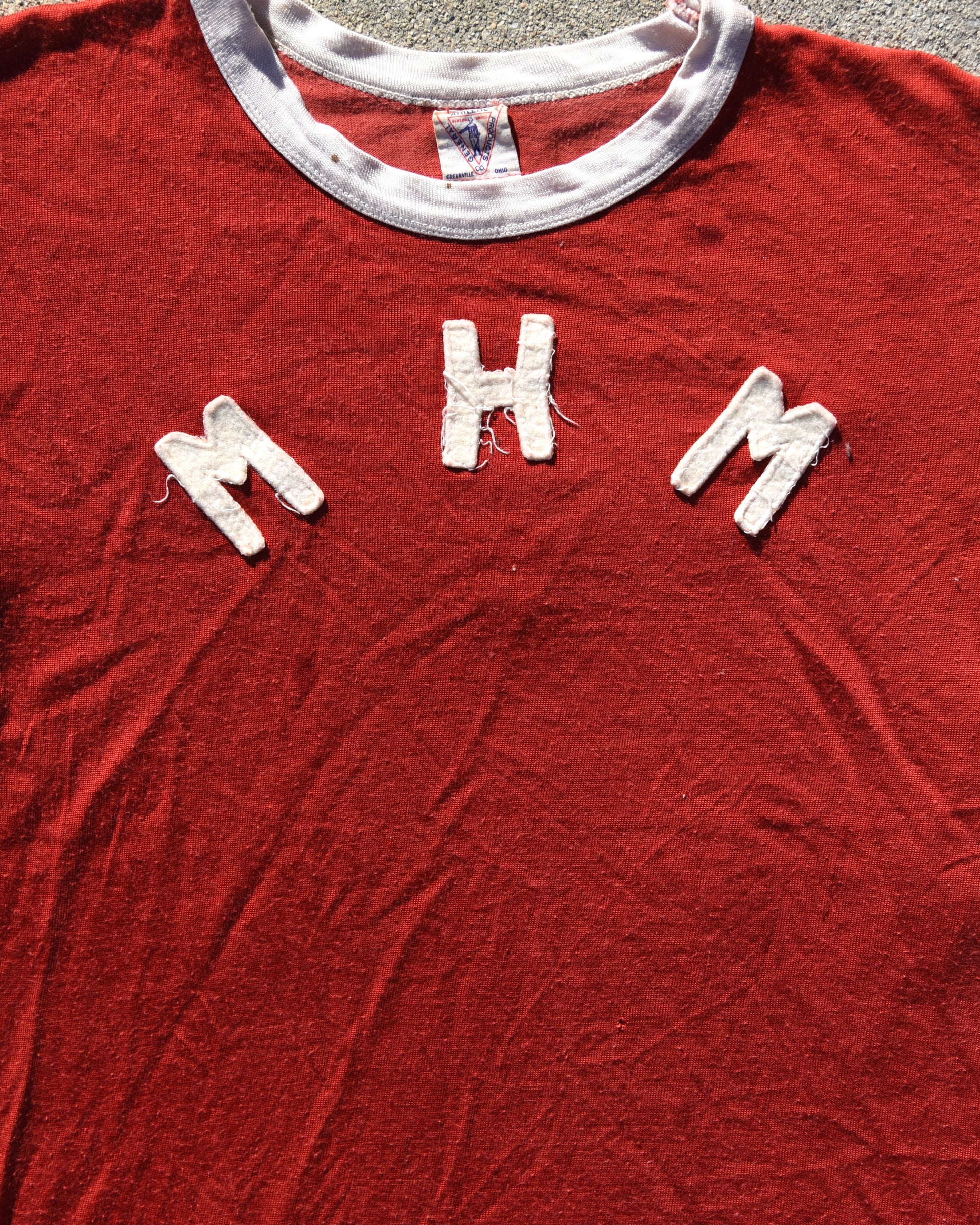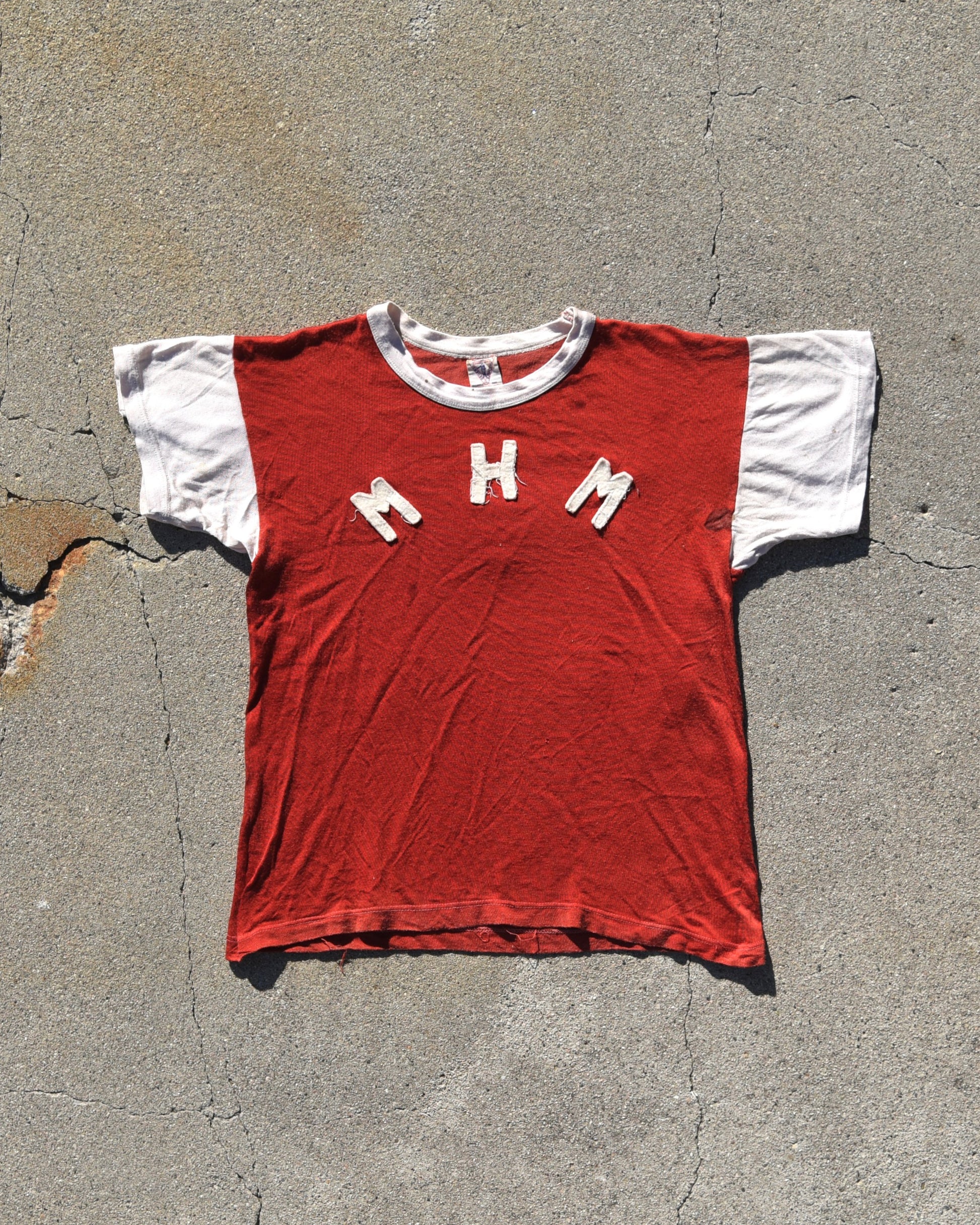 True Vintage 1950s Durene MHM Jersey. Felt embroidered letters on front and back. Signs of wear consistent with age. Fits like a small