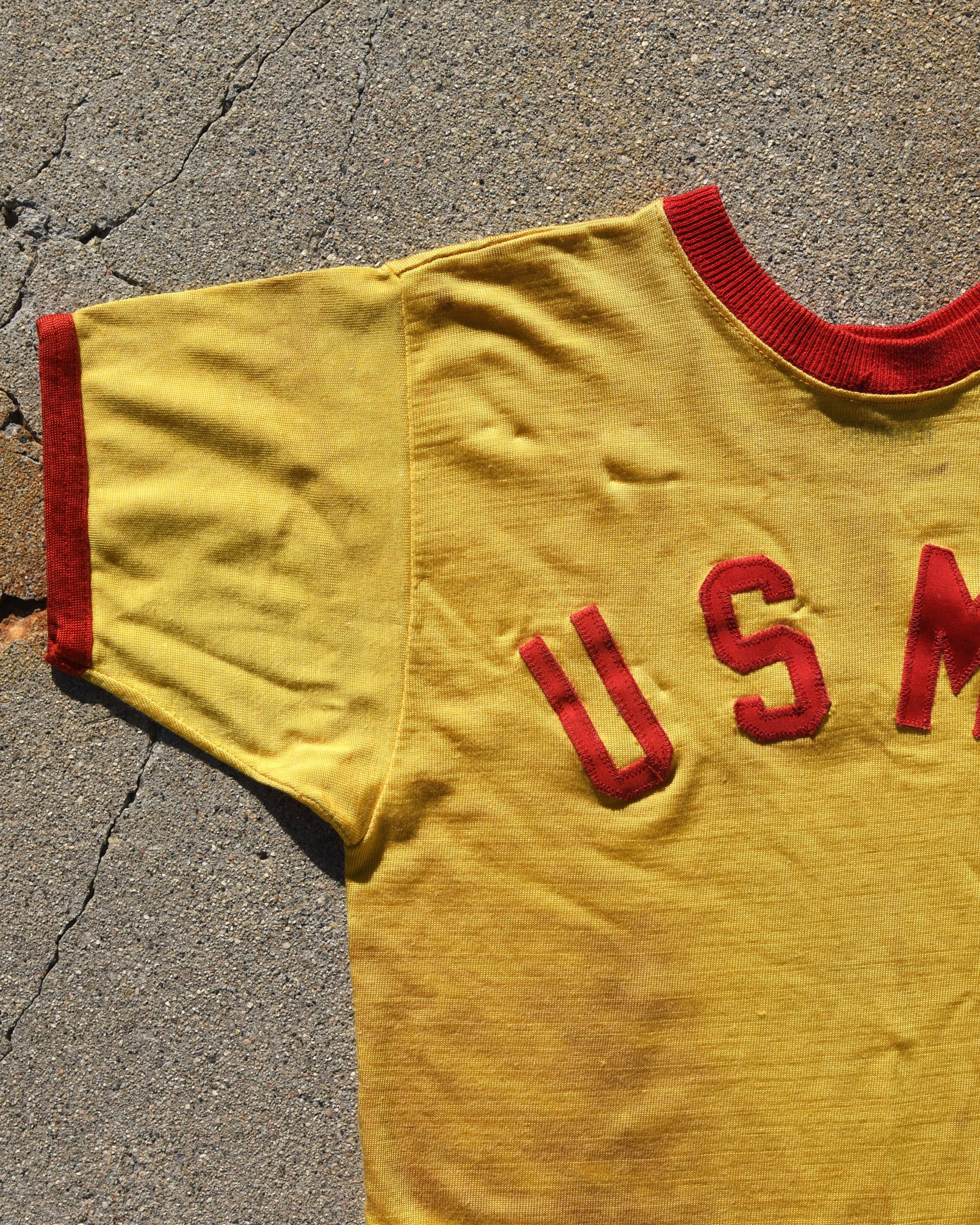 True vintage 1950s Durene USMC Jersey. Signs of wear all throughout consistent with age. Fits like a small