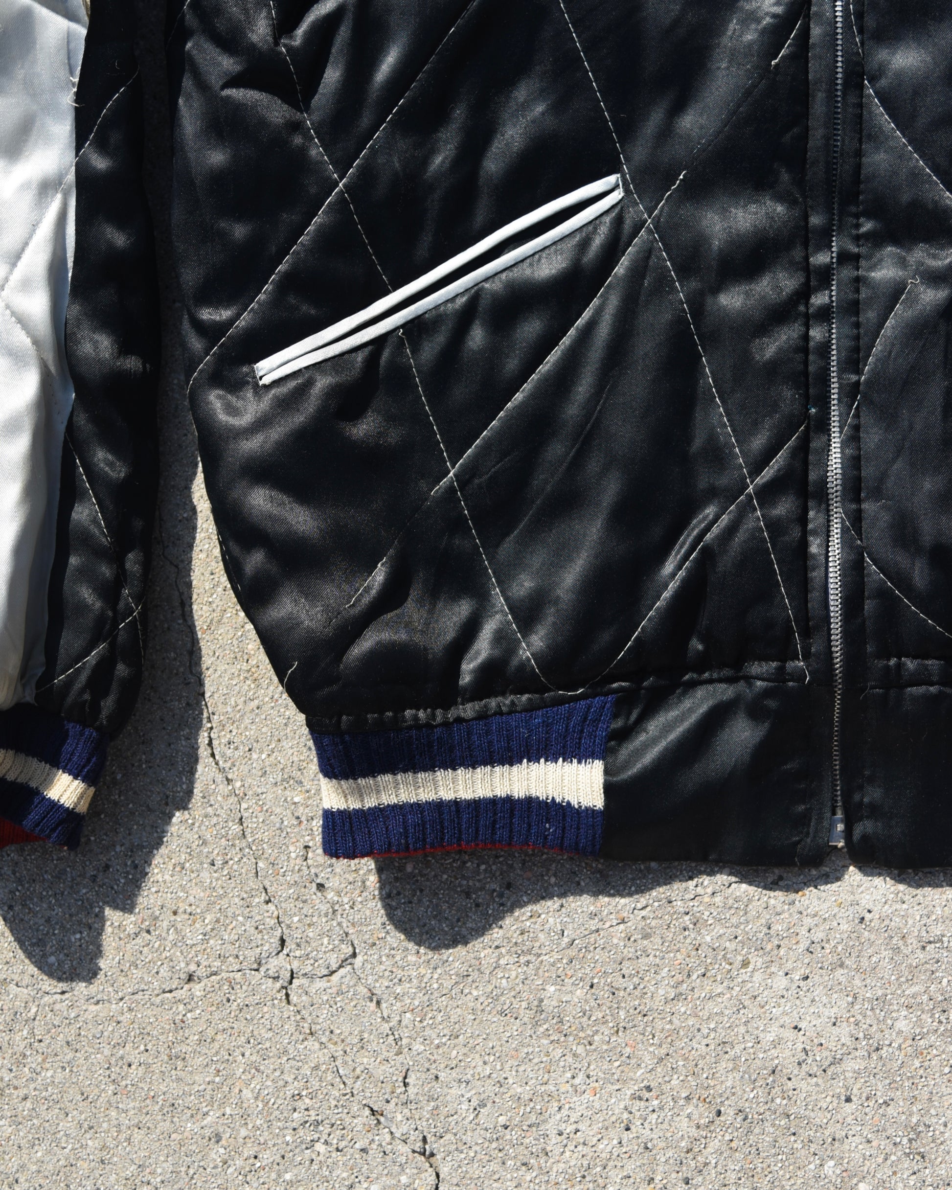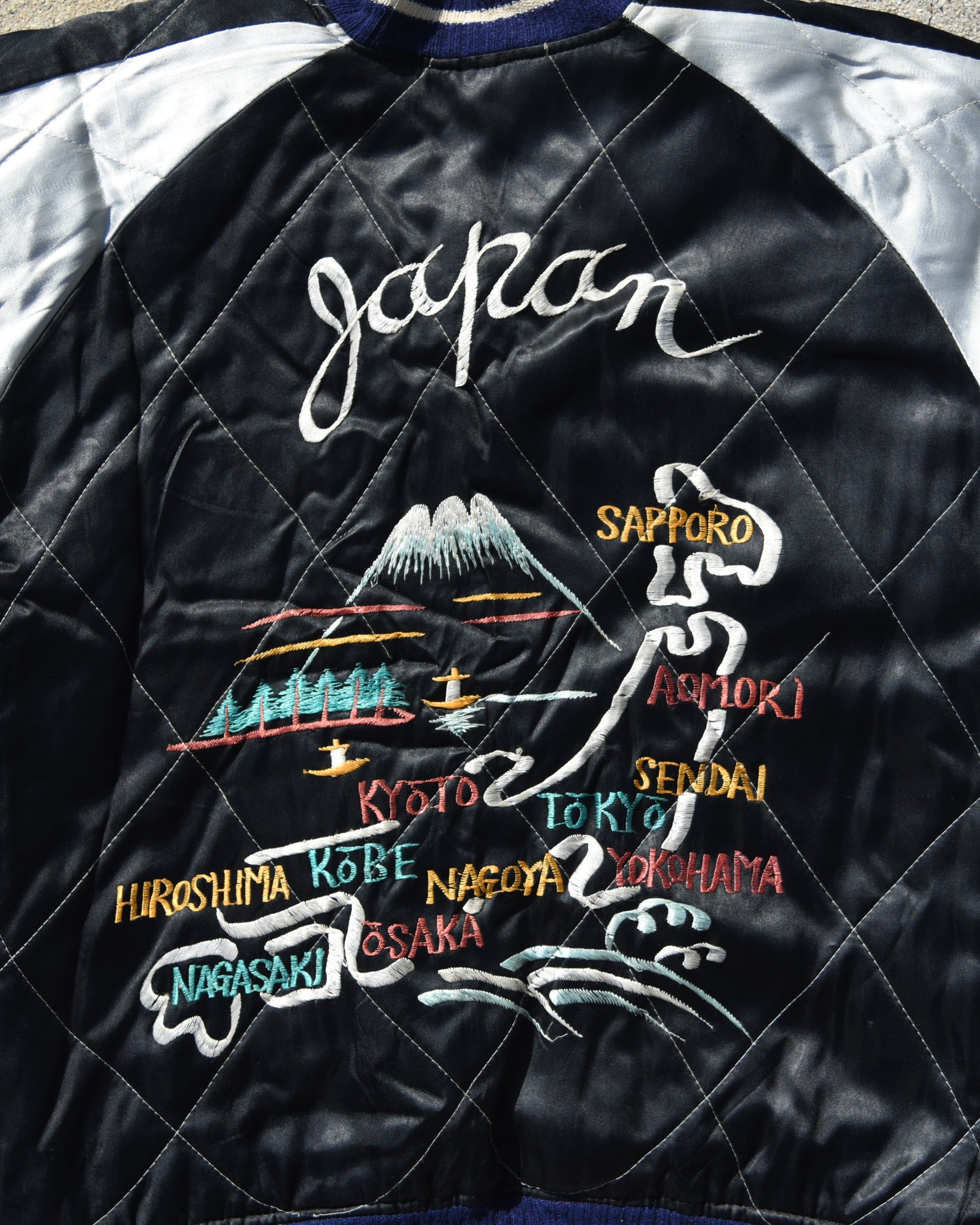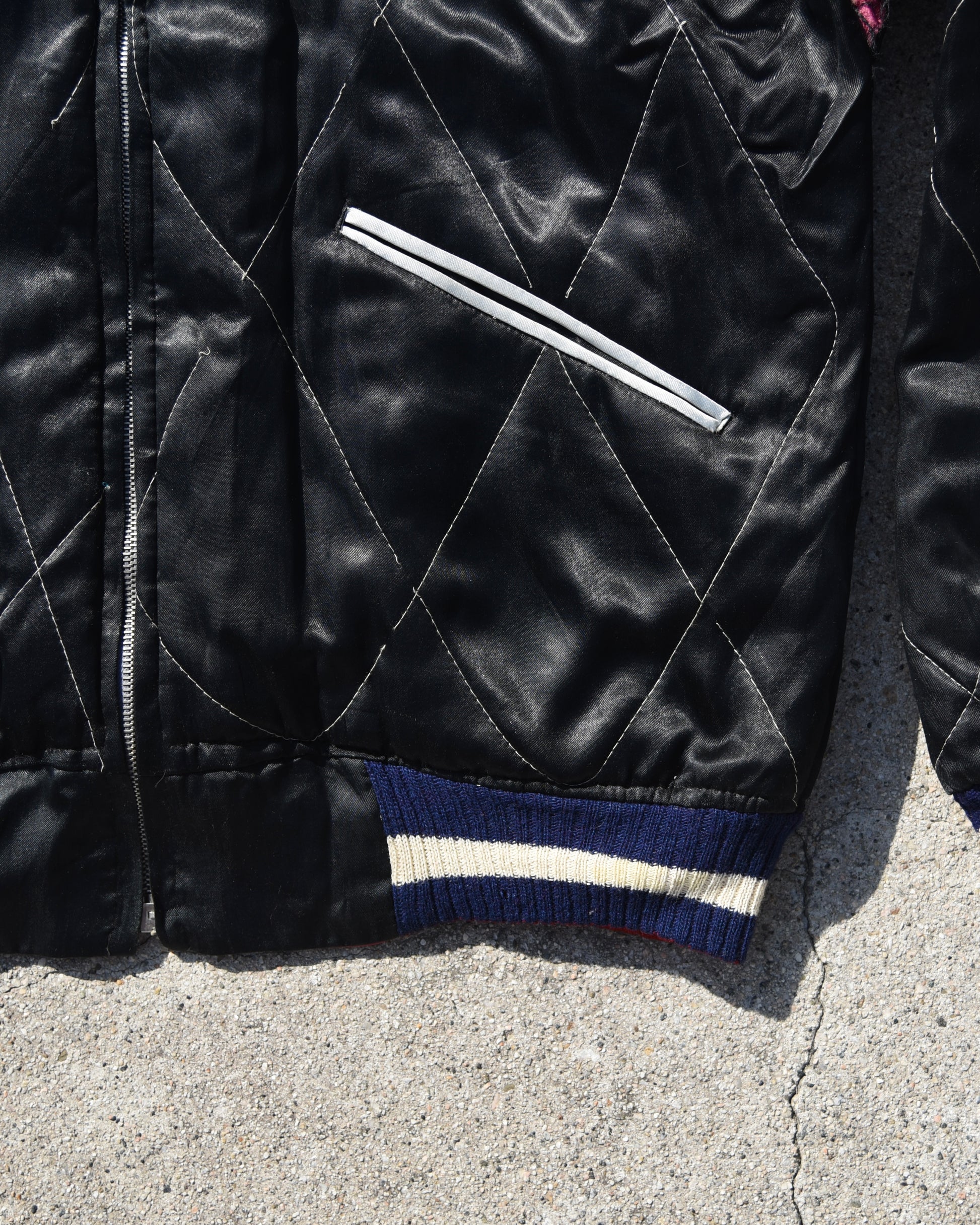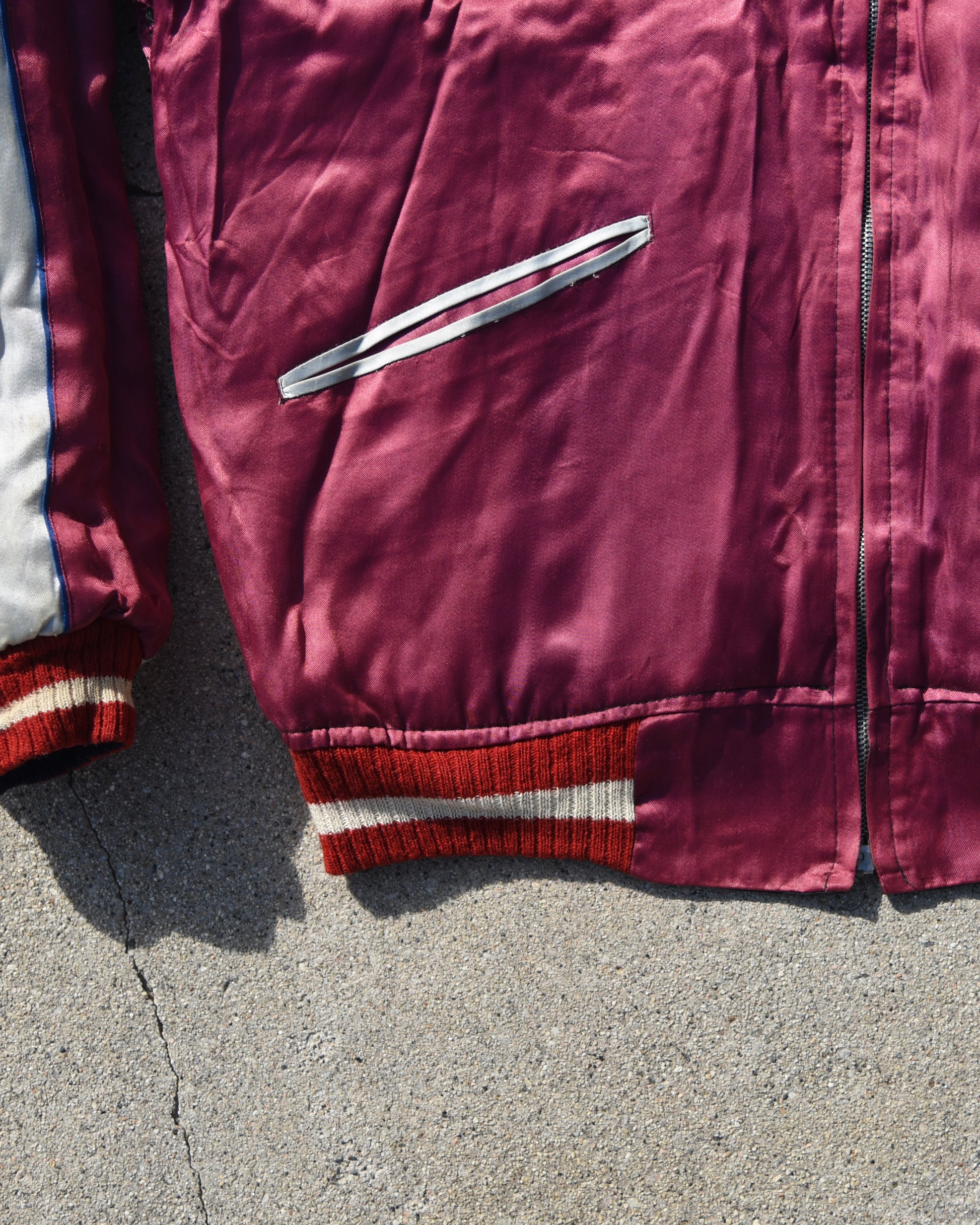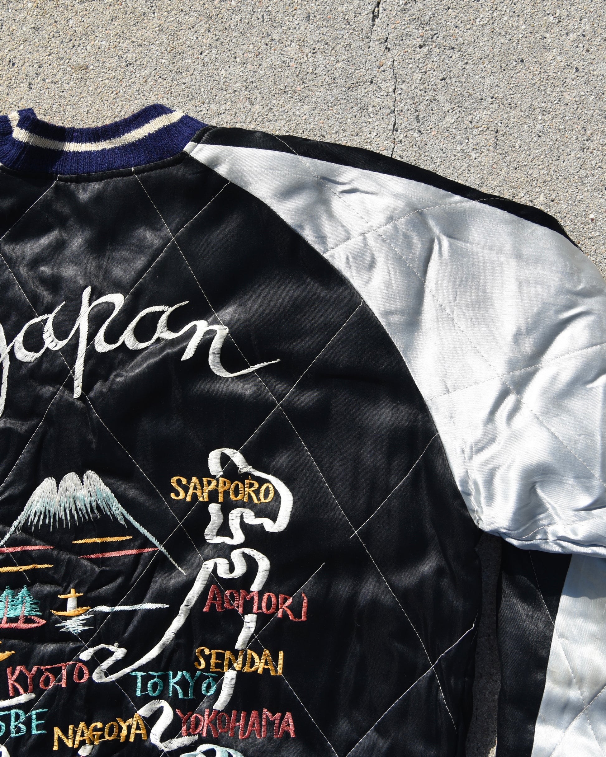 True vintage 1950s Japan Sukajan Reversible Jacket. Rare larger size of the Sukajan jackets. In good condition for its age but does have some signs of wear most notably on the red side of the jacket there are some seam splits and minor tears on one arm. Zipper works great. On original SPEED double sided zipper. Fits like a medium