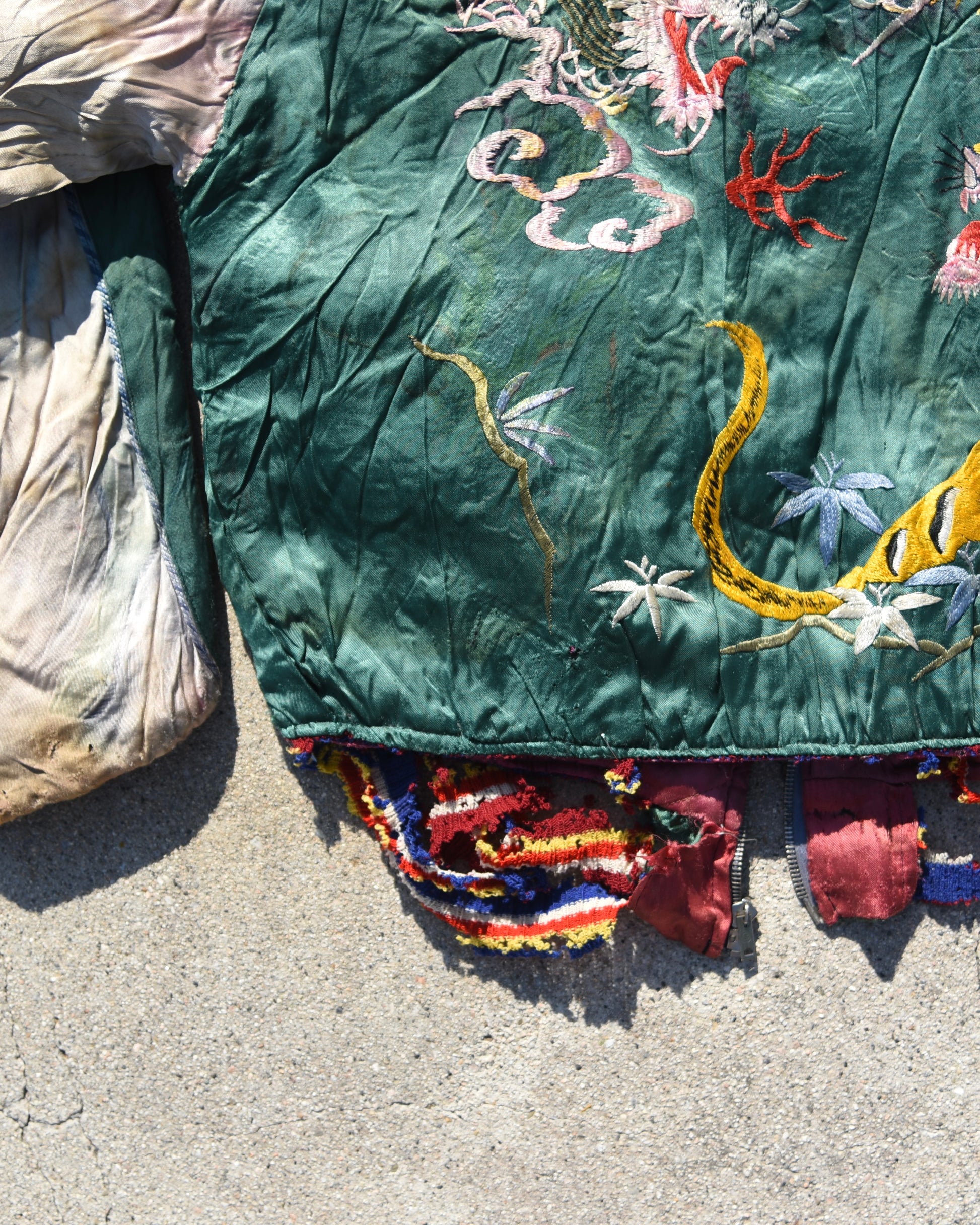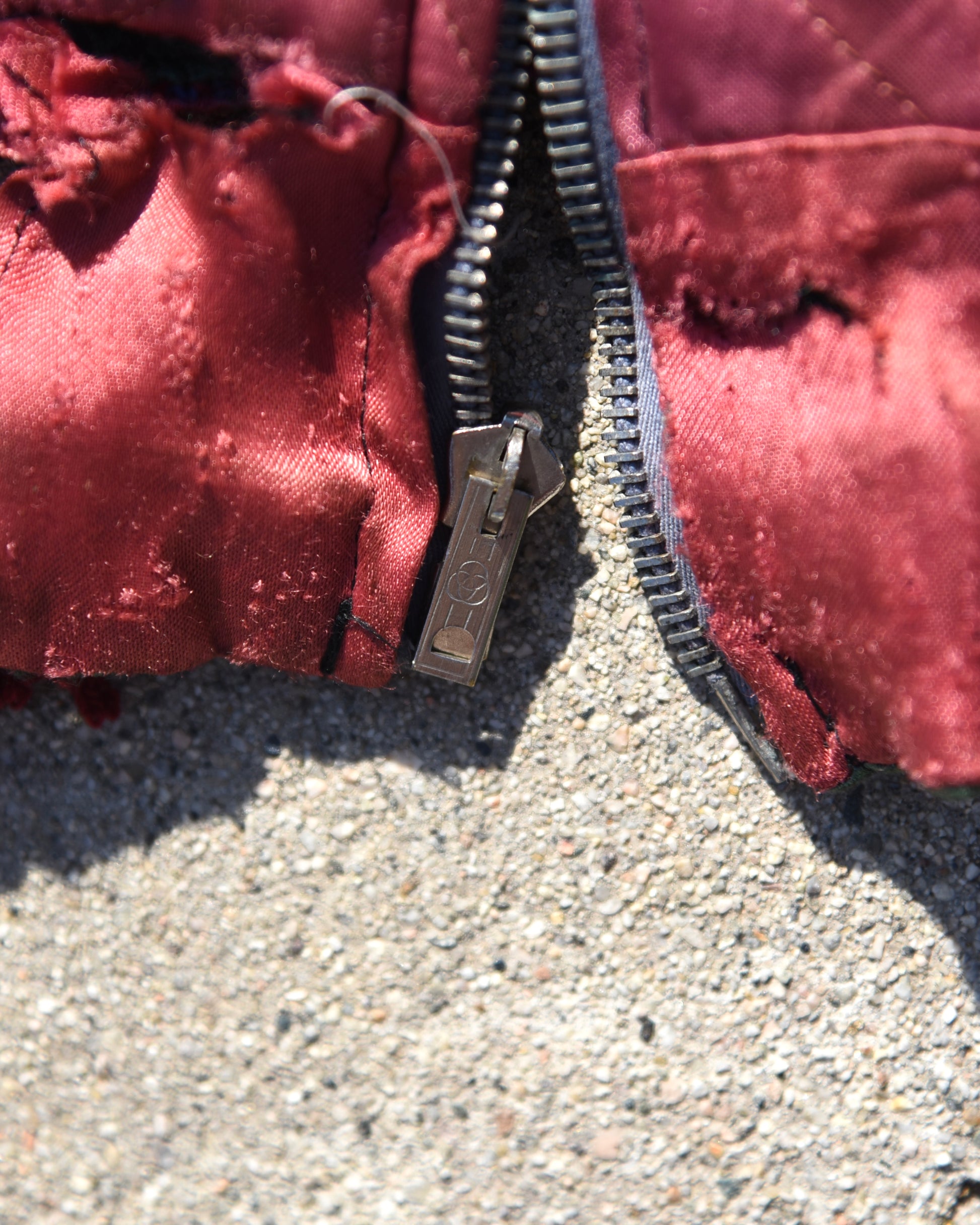 Extremely thrashed 1950s Japan Sukajan Souvenir Jacket. Very worn genuinely won’t find another like it. A statement piece but definitely not for everyone. The zipper surprisingly still works. Rare larger size for a 50s Sukajan