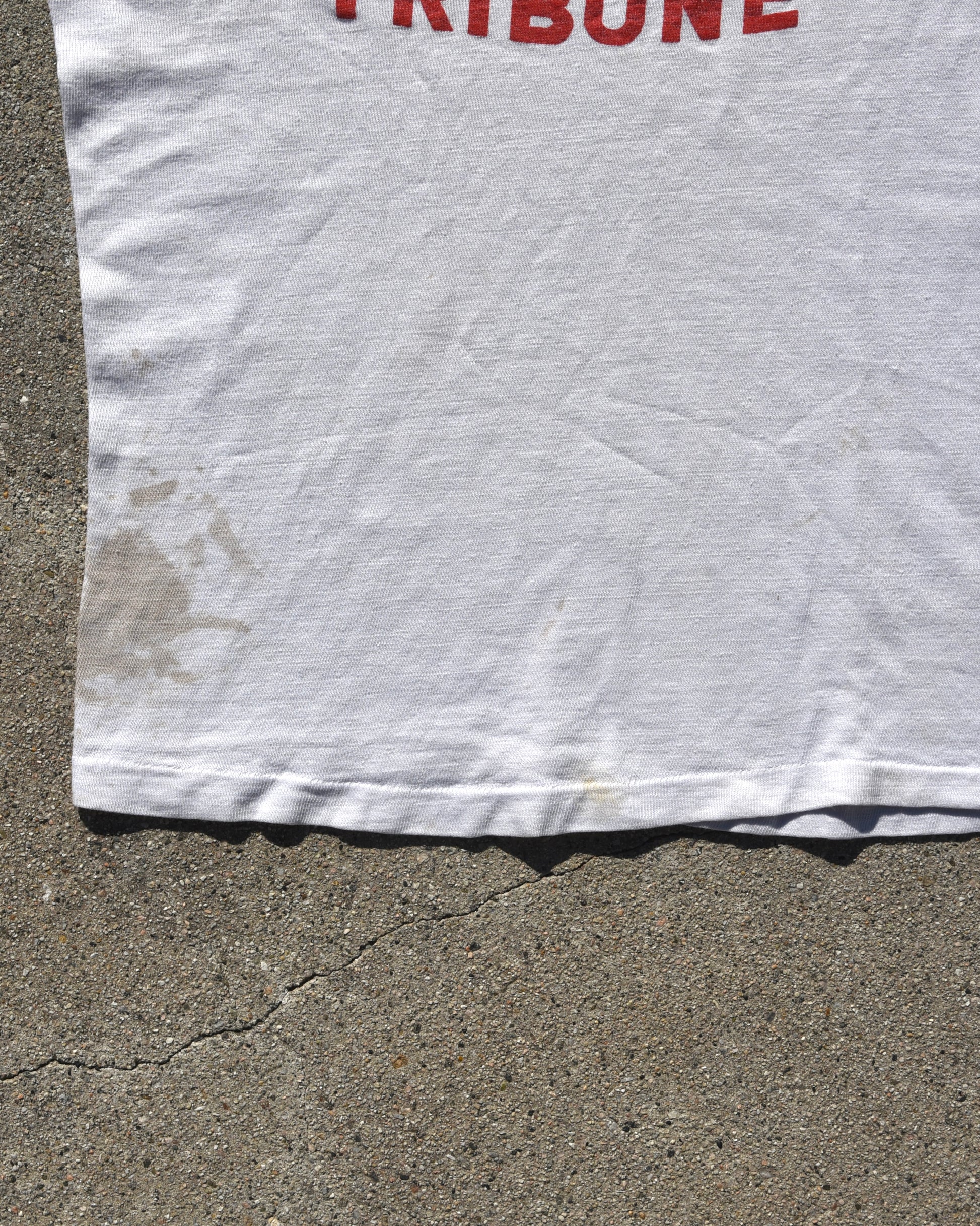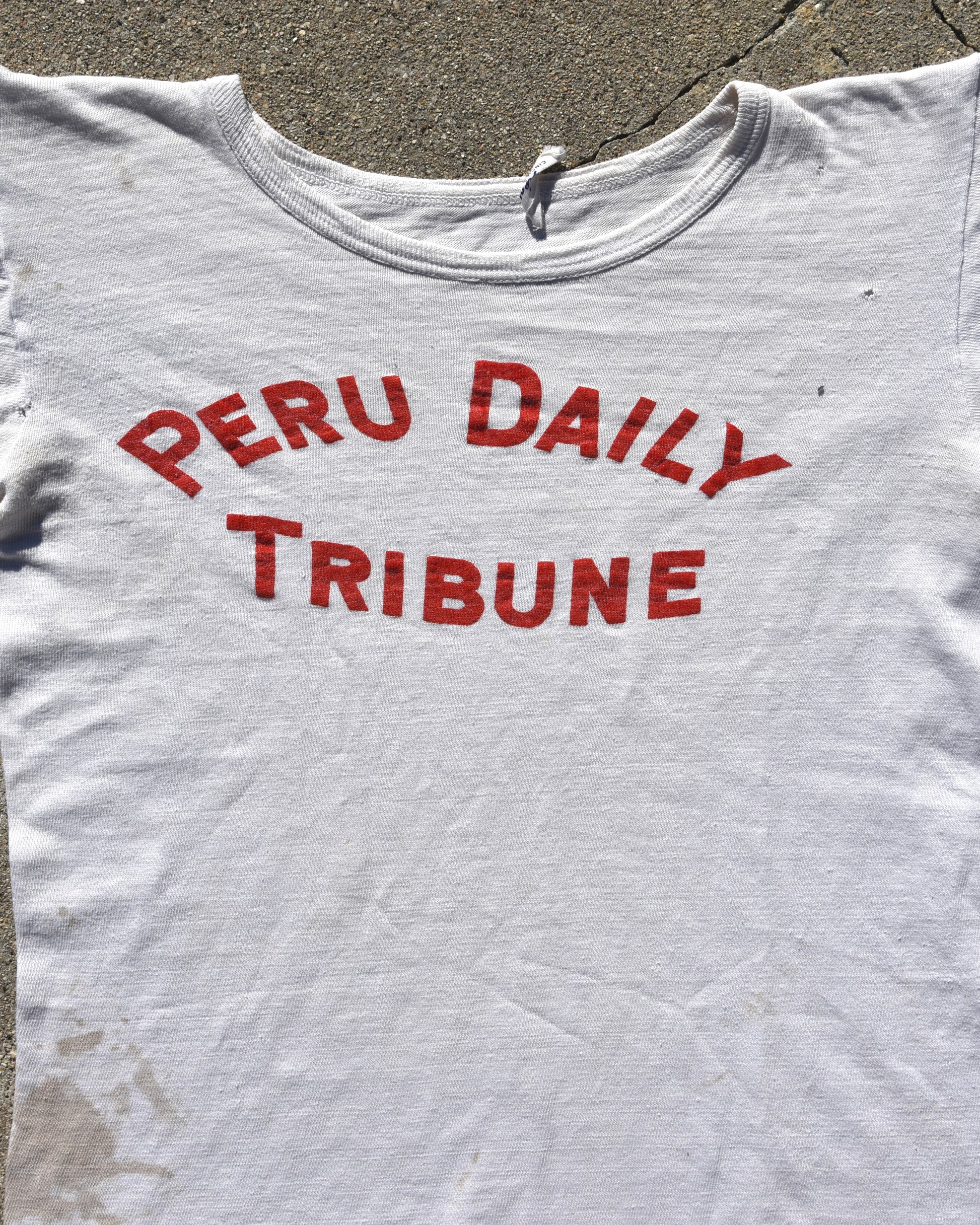 True vintage 1950s Peru Daily Tribune Tshirt. Has signs of wear consistent with age throughout. Tagged size medium but fits like a boxy small