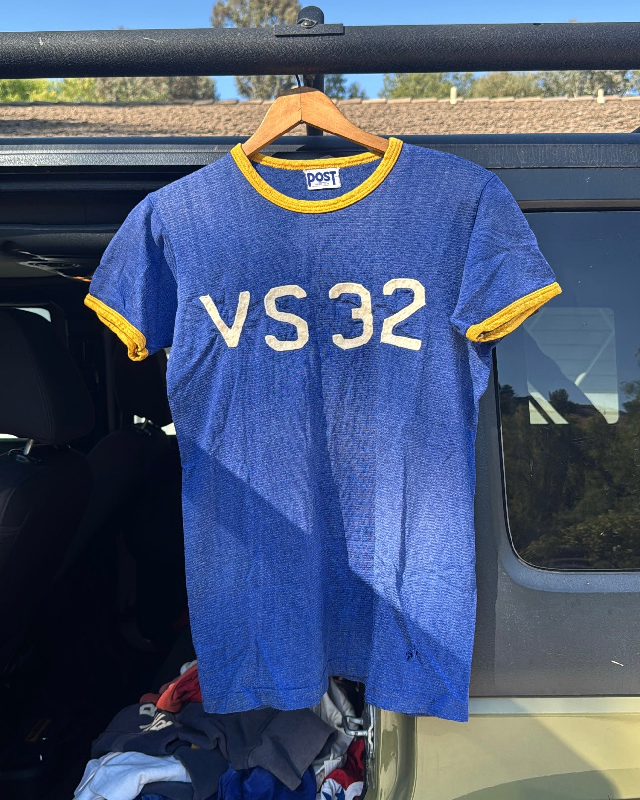 True vintage 1950s Post Durene U.S. Navy VS32 Jersey. Felt embroidered letters. In good condition overall for its age. VS32 was worn by Sea Control Squadron 32 during the 1950s at the Naval Air Station in Norfolk VA. This was attained from the original owner. Tagged size medium