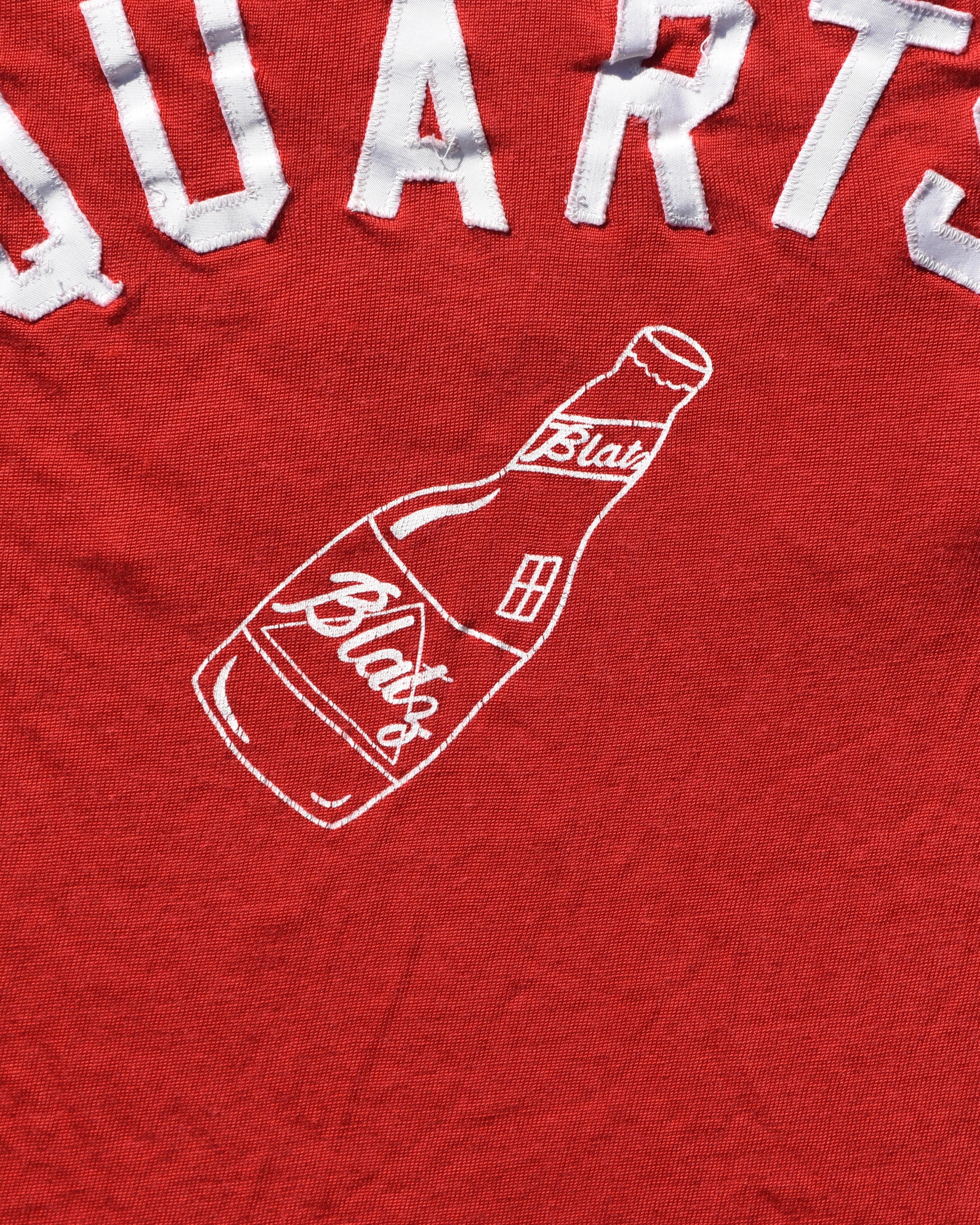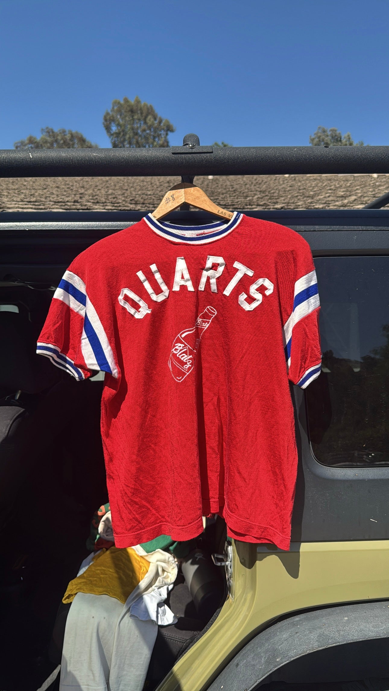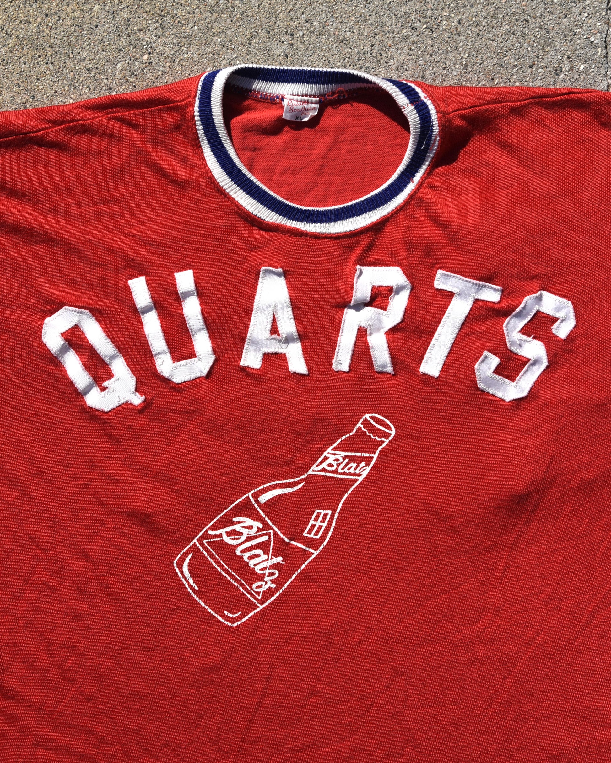 True vintage 1950s Russell Southern Durene Quarts Beer Jersey. In great condition overall for its age. Tagged size XL which is hard to find on these older jerseys