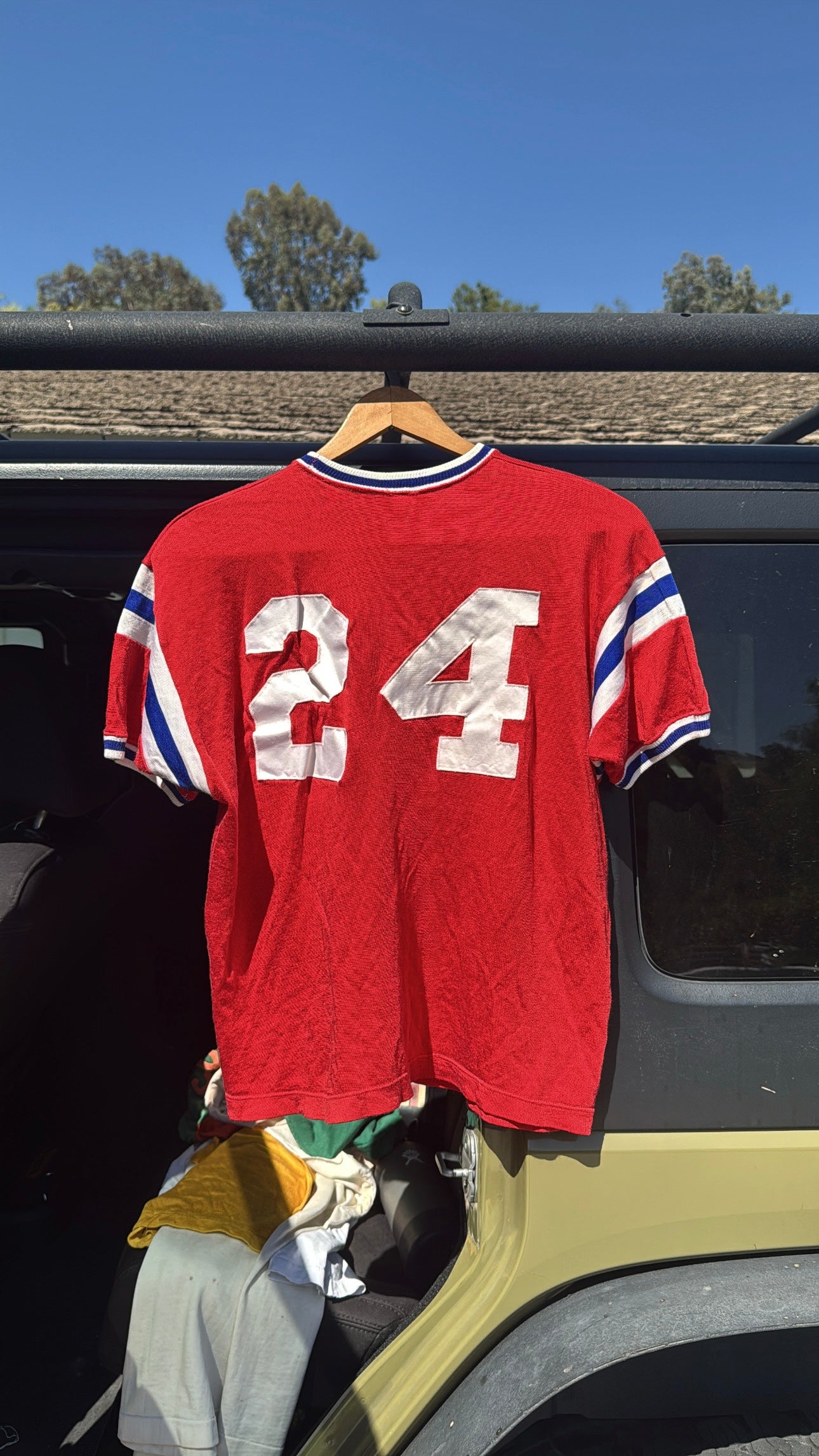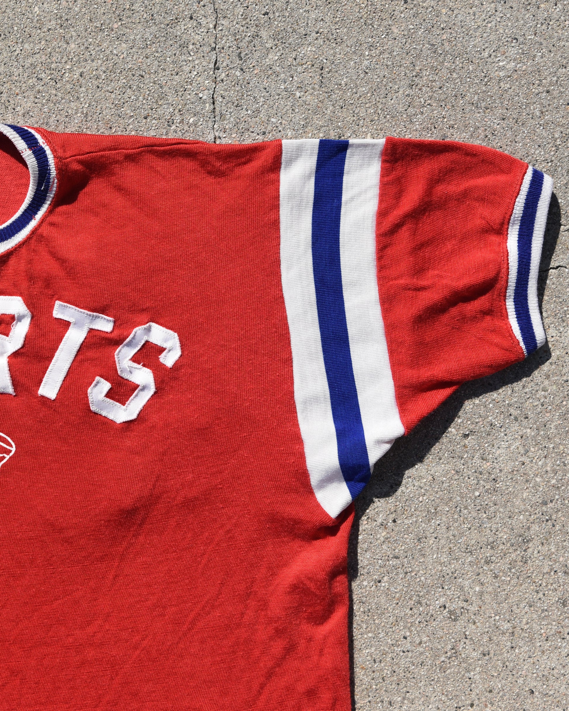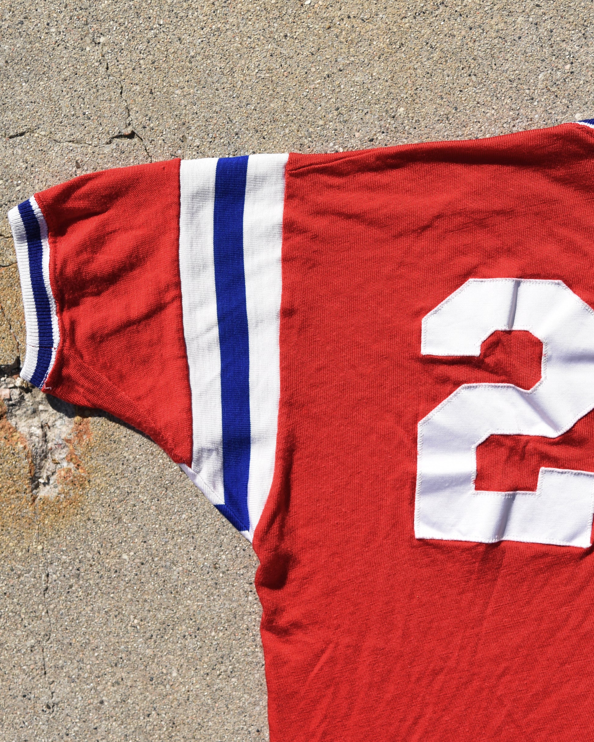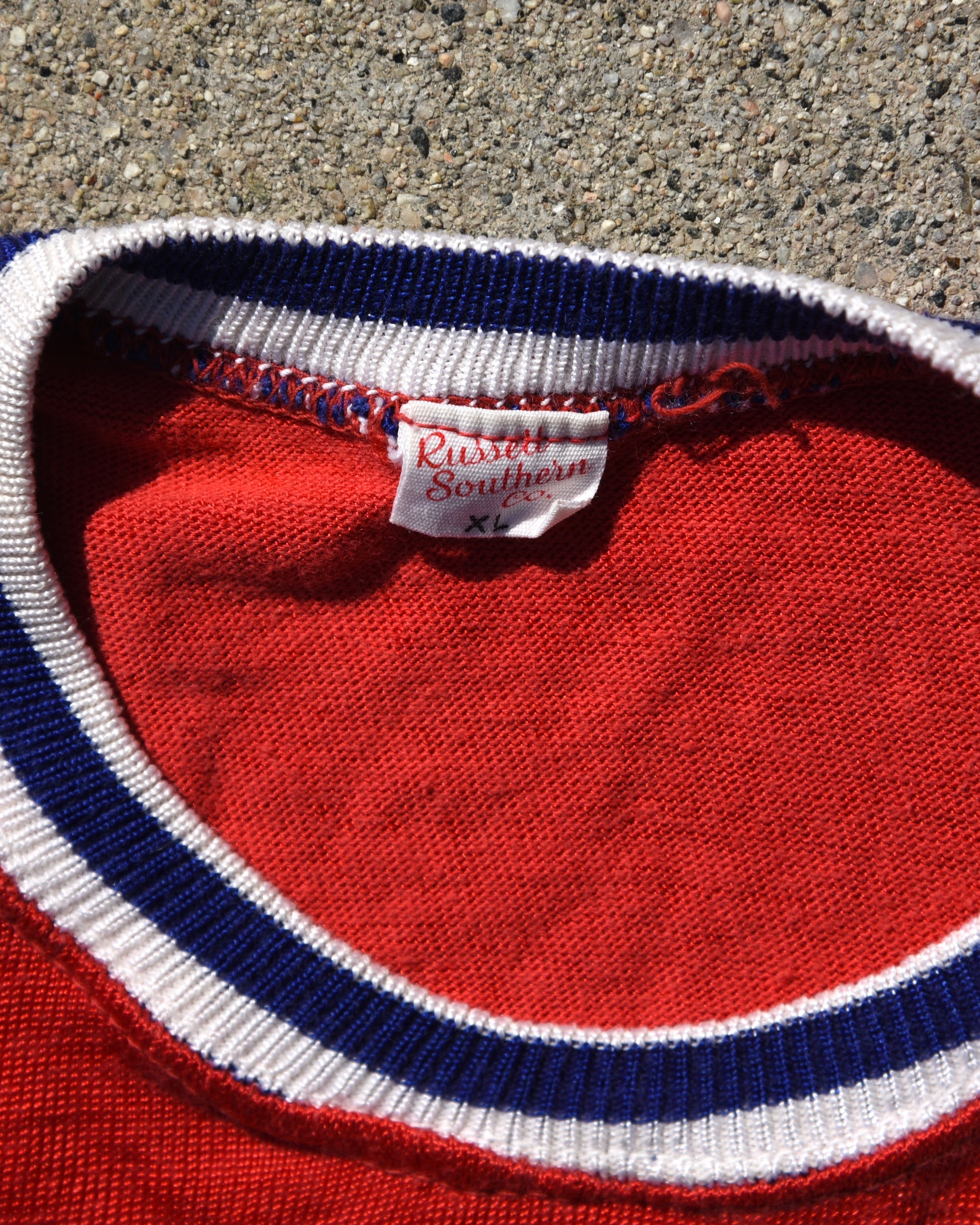 True vintage 1950s Russell Southern Durene Quarts Beer Jersey. In great condition overall for its age. Tagged size XL which is hard to find on these older jerseys