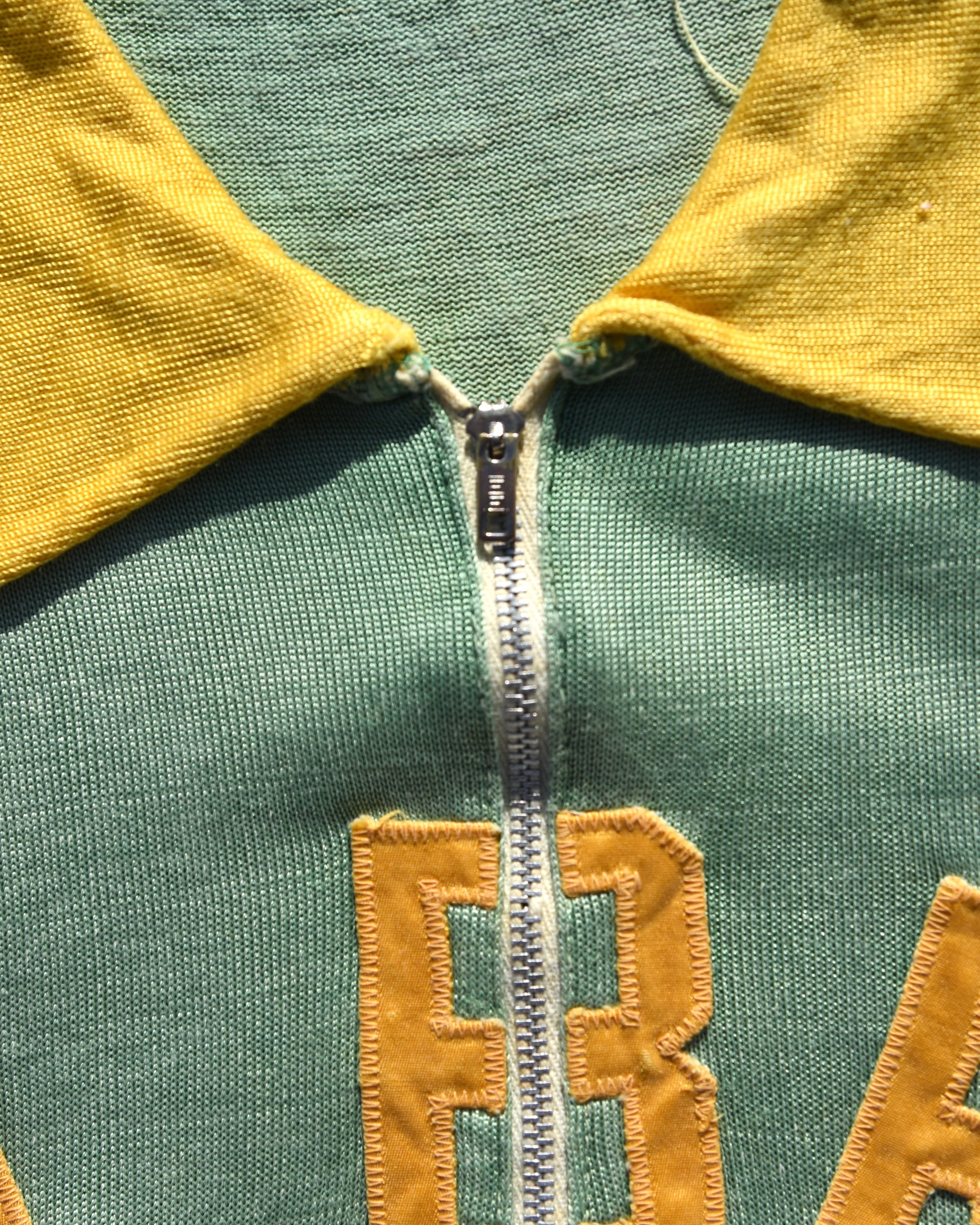 True vintage 1950s sun faded Albro Durene Jersey. Heavily faded all throughout. Zipper in tact and functional. Fits like an XL