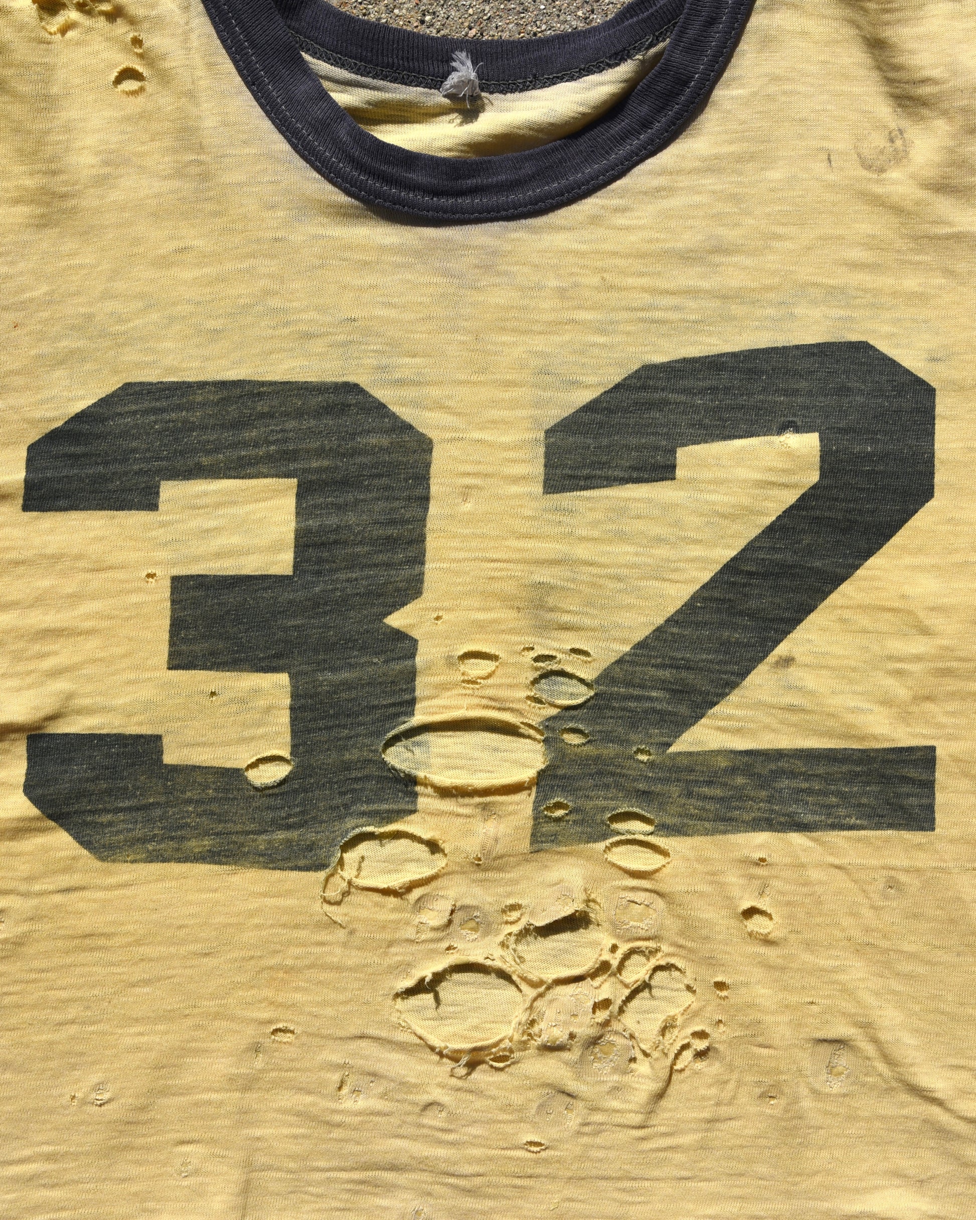 True vintage 1950s water print football jersey. Thrashed and sun faded heavily throughout in a really beautiful way. Fits small, most likely a youth or a women’s jersey. If this was my size I’d never get rid of it