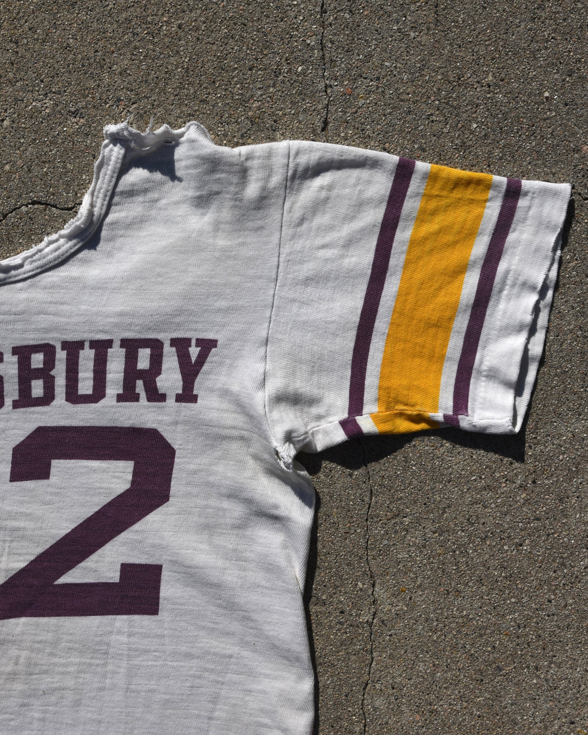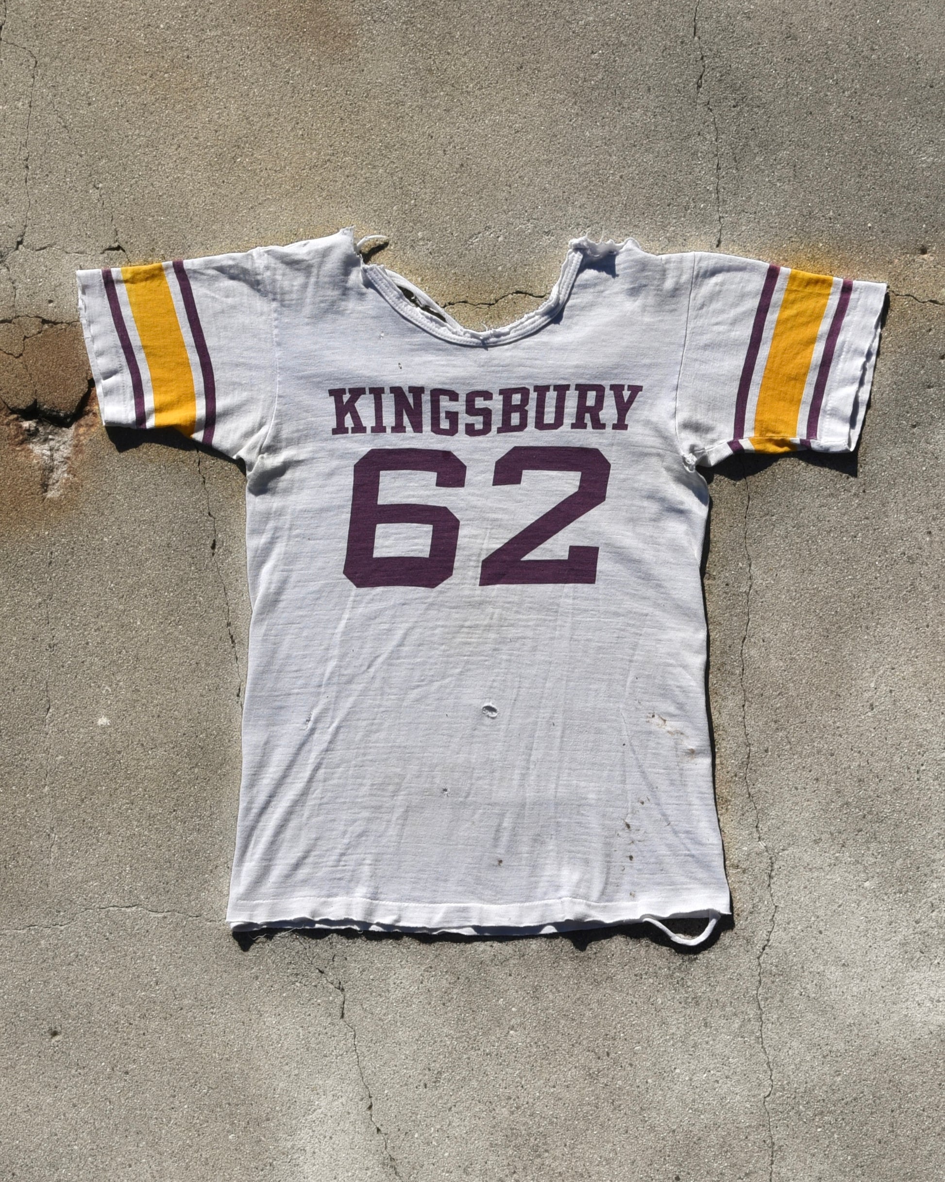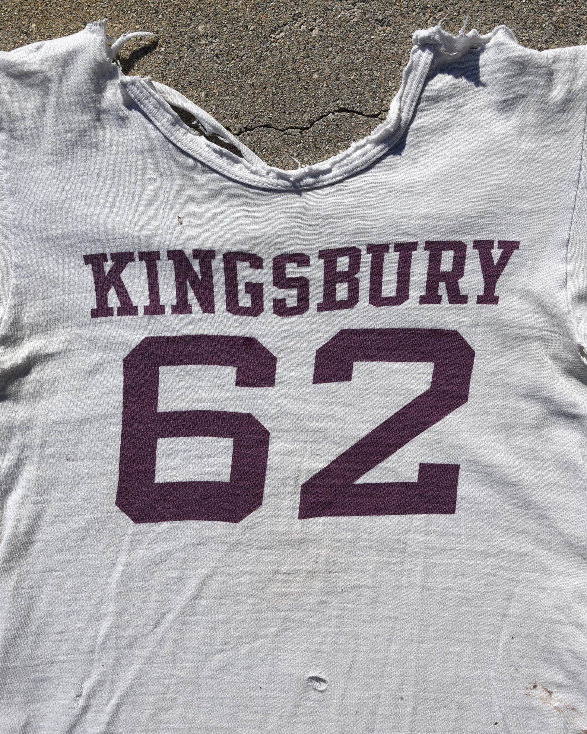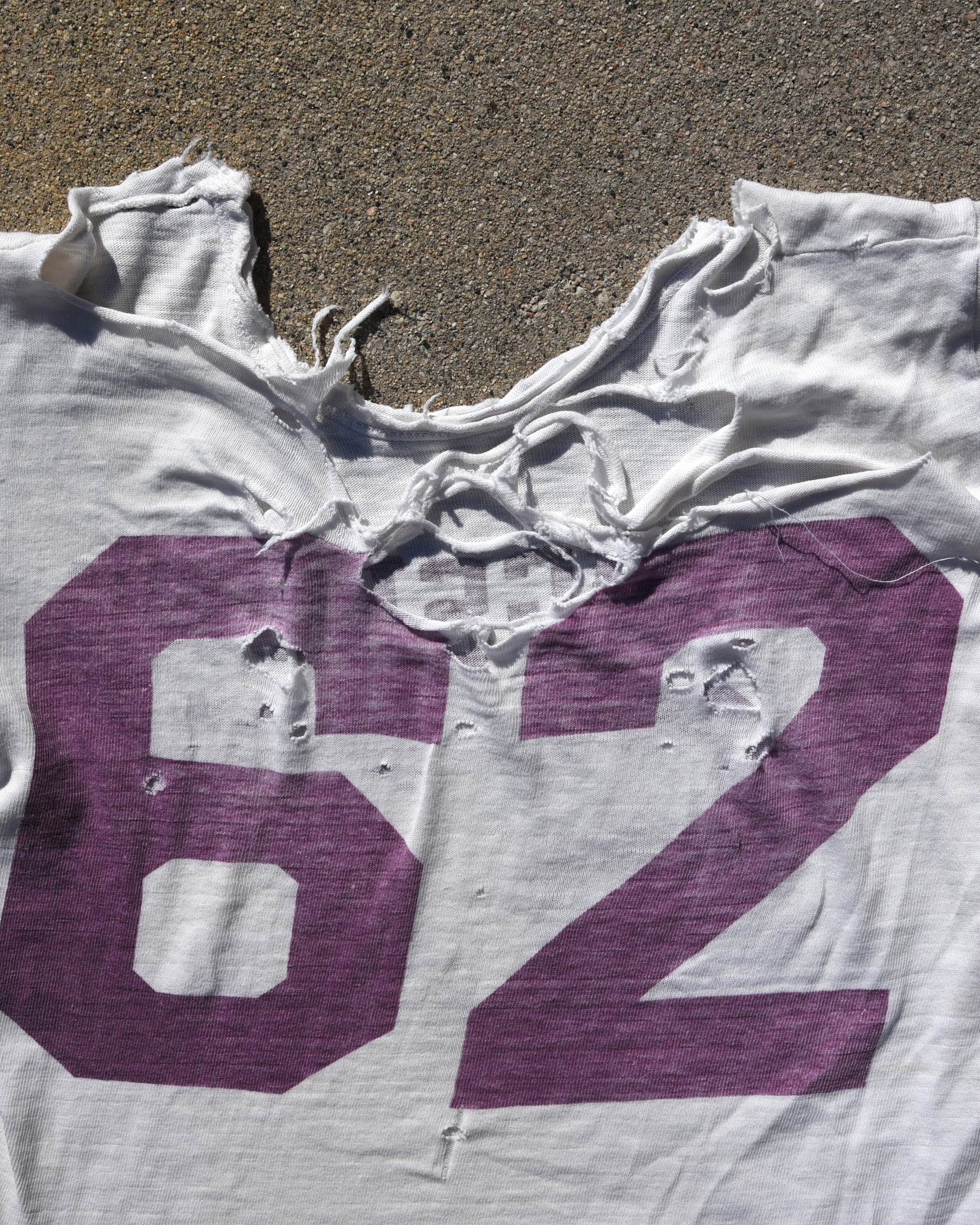Vintage 1950s Thrashed football jersey. Heavily distressed on the collar especially on the back. No tag, but almost positive this is a 50s champion jersey as I found it with a handful of other champion jerseys from that era. Fits like a medium