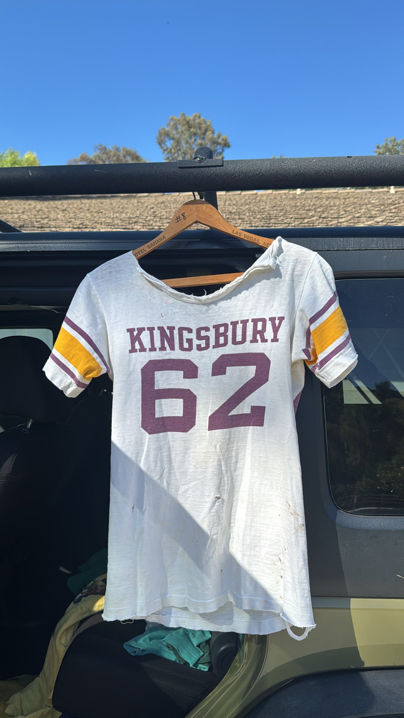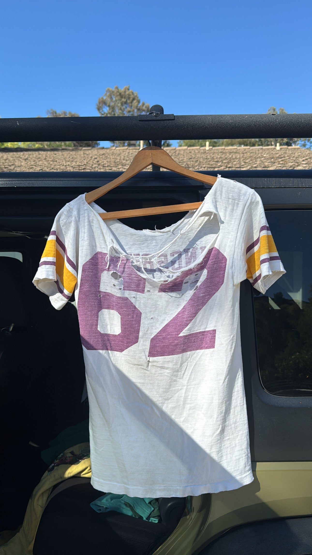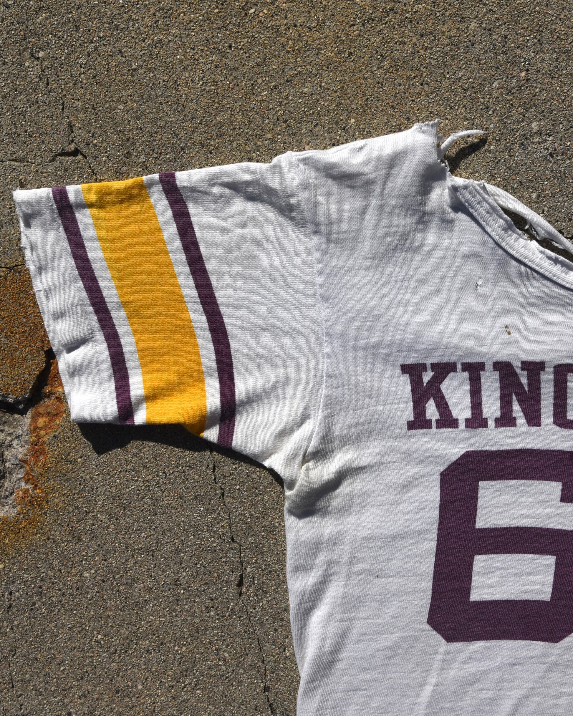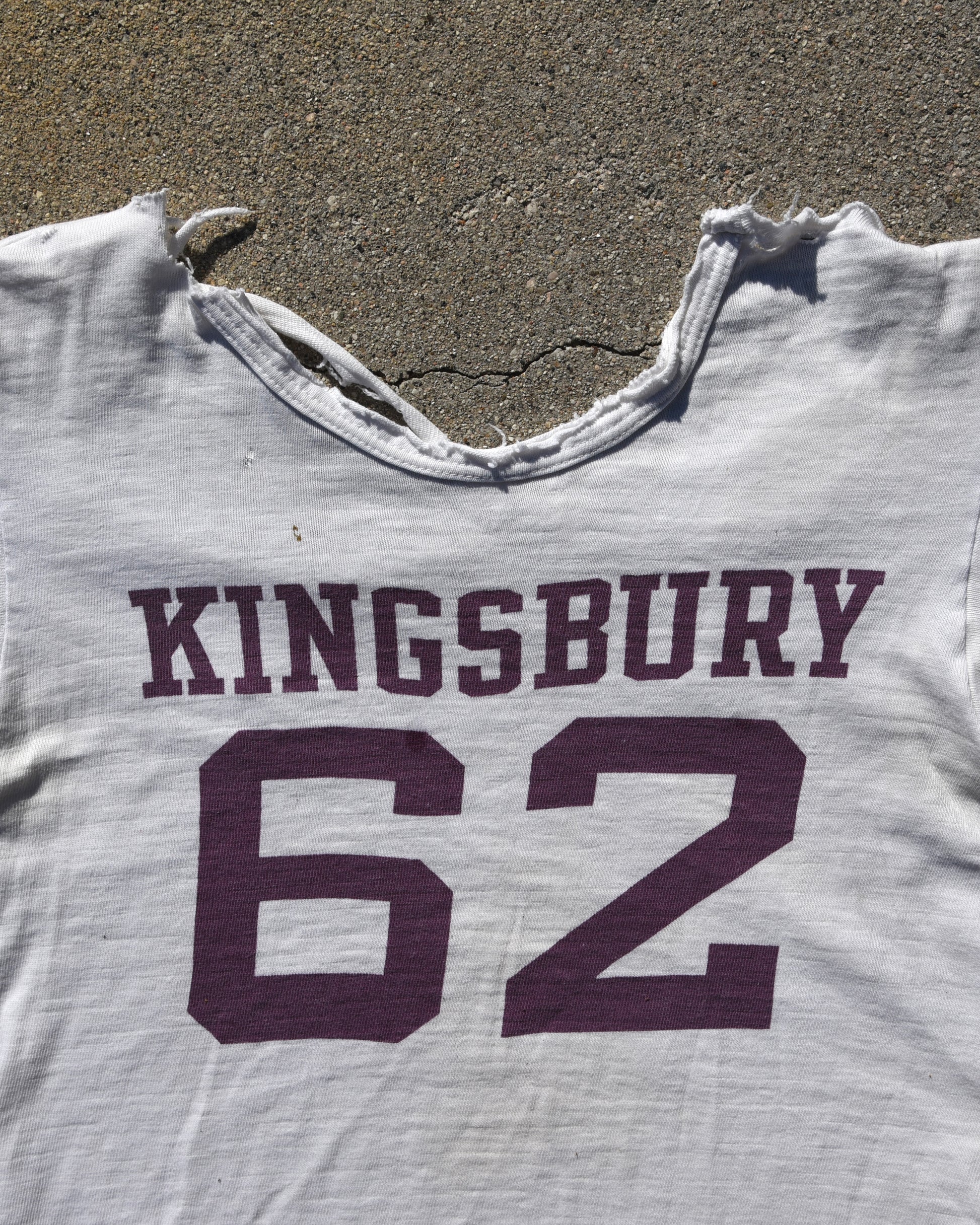 Vintage 1950s Thrashed football jersey. Heavily distressed on the collar especially on the back. No tag, but almost positive this is a 50s champion jersey as I found it with a handful of other champion jerseys from that era. Fits like a medium
