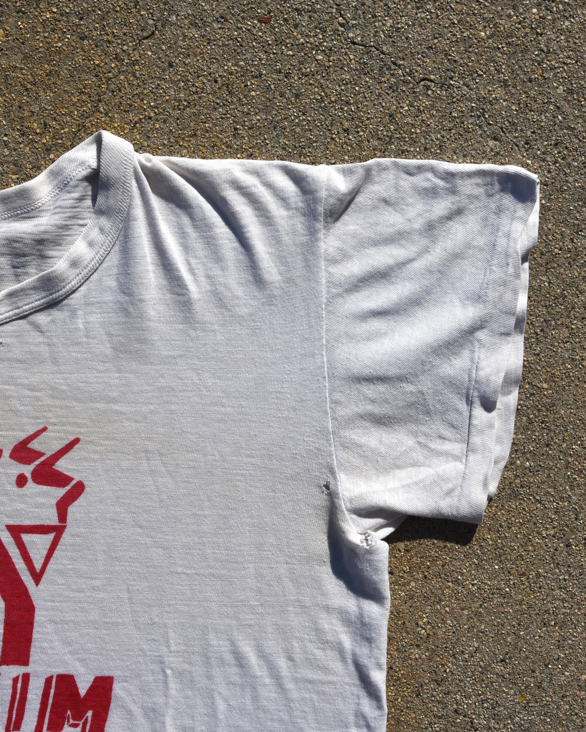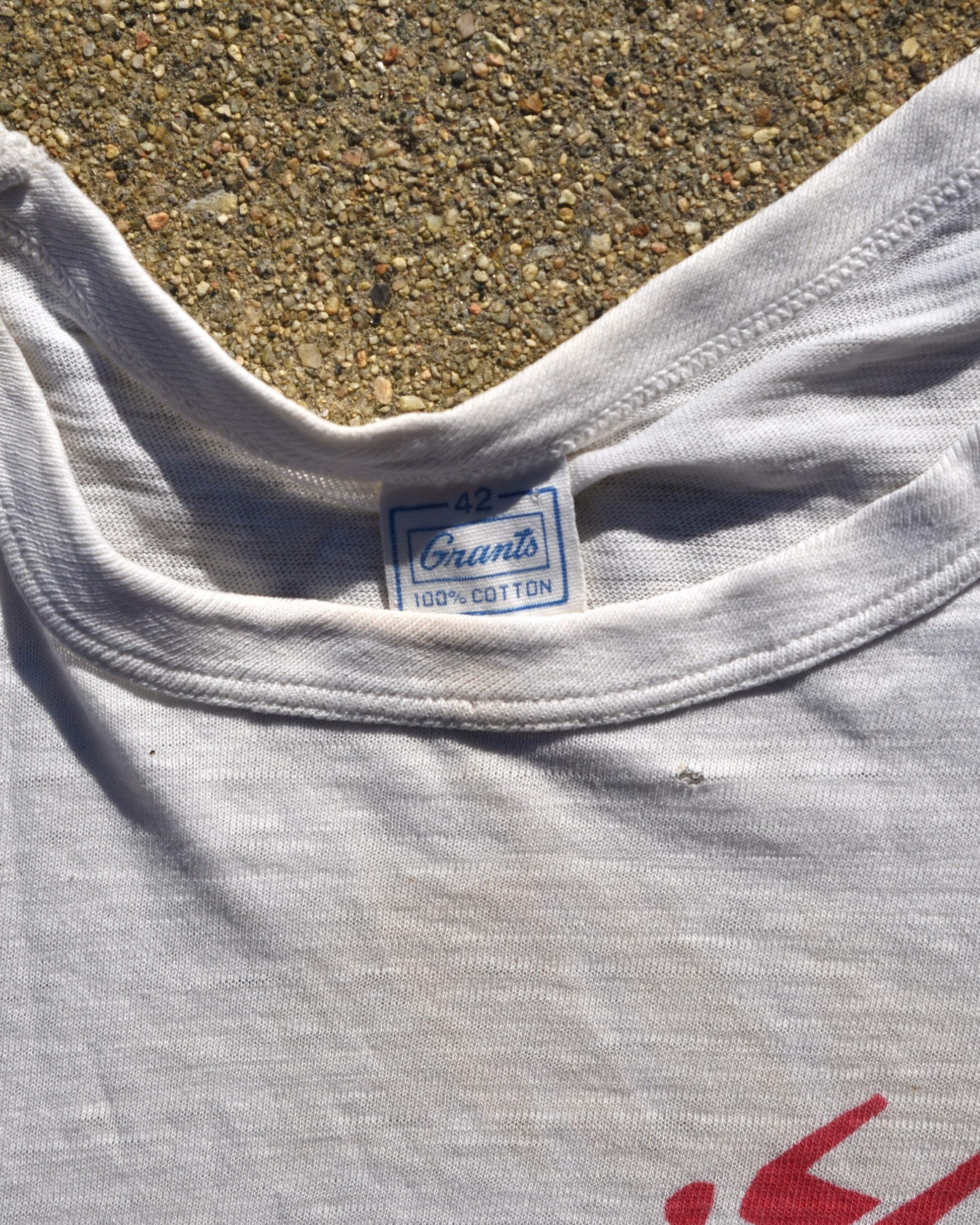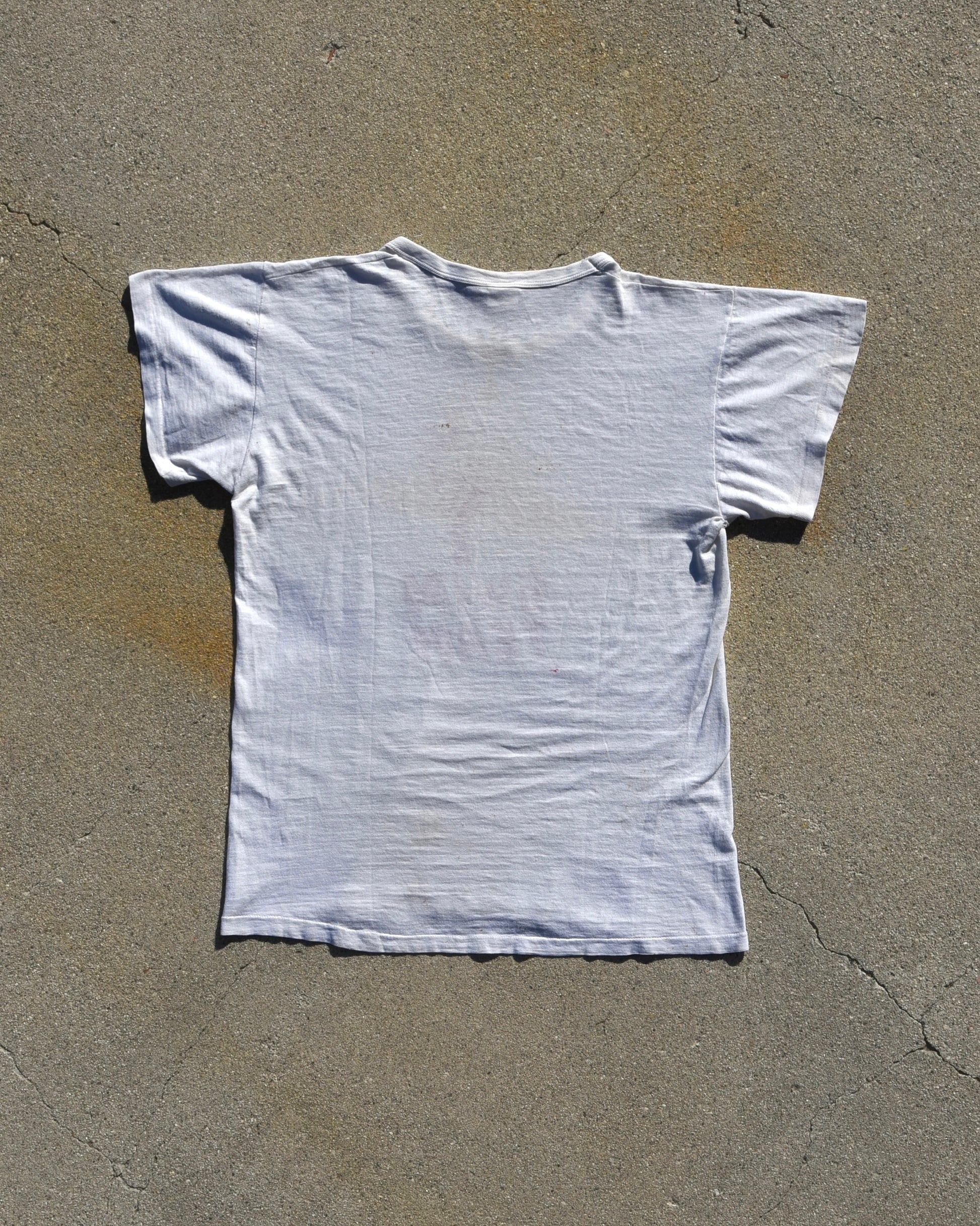 True vintage 1950s YMCA Swim Team Waterprint Tshirt. Has some signs of wear throughout but in good condition for its age. Tagged size large but fits more like a medium