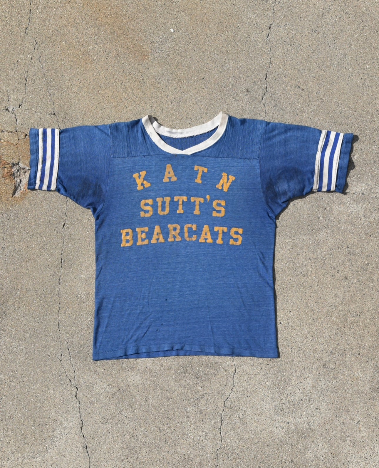 True vintage 1960s Bearcats Cotton Football Jersey. Has signs of wear throughout consistent with age. Fits like a size medium