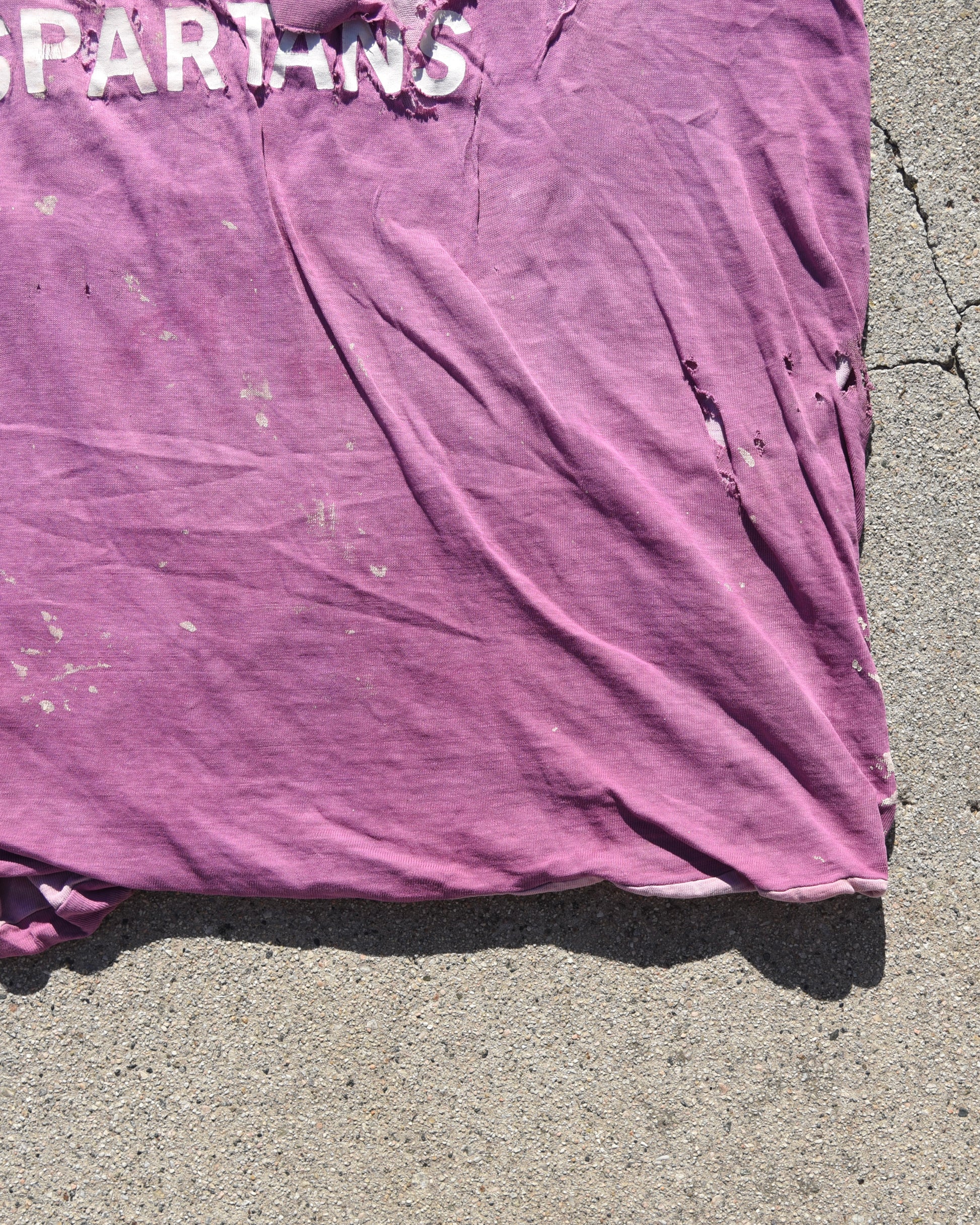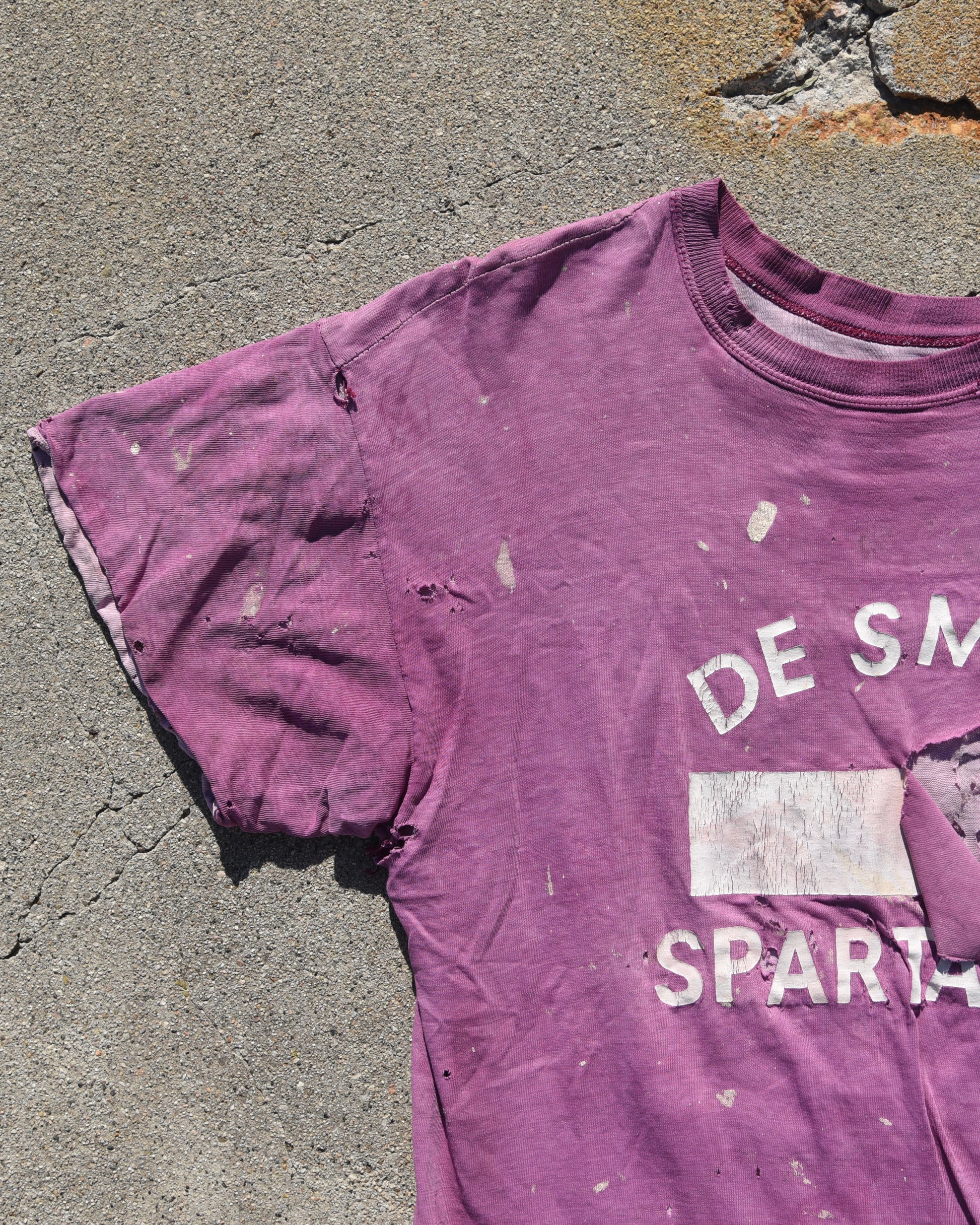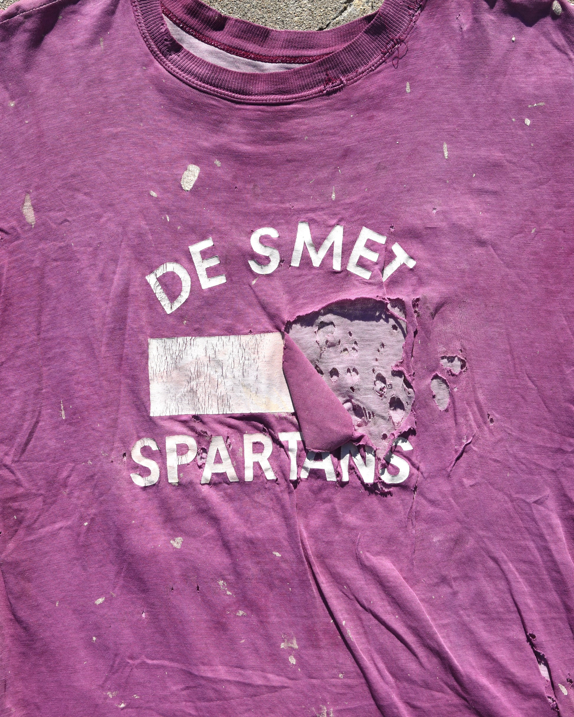 True vintage 1960s Thrashed De Smet Spartans Double Face Tshirt. Thrashed and distressed heavily all throughout. Fits like a large or XL