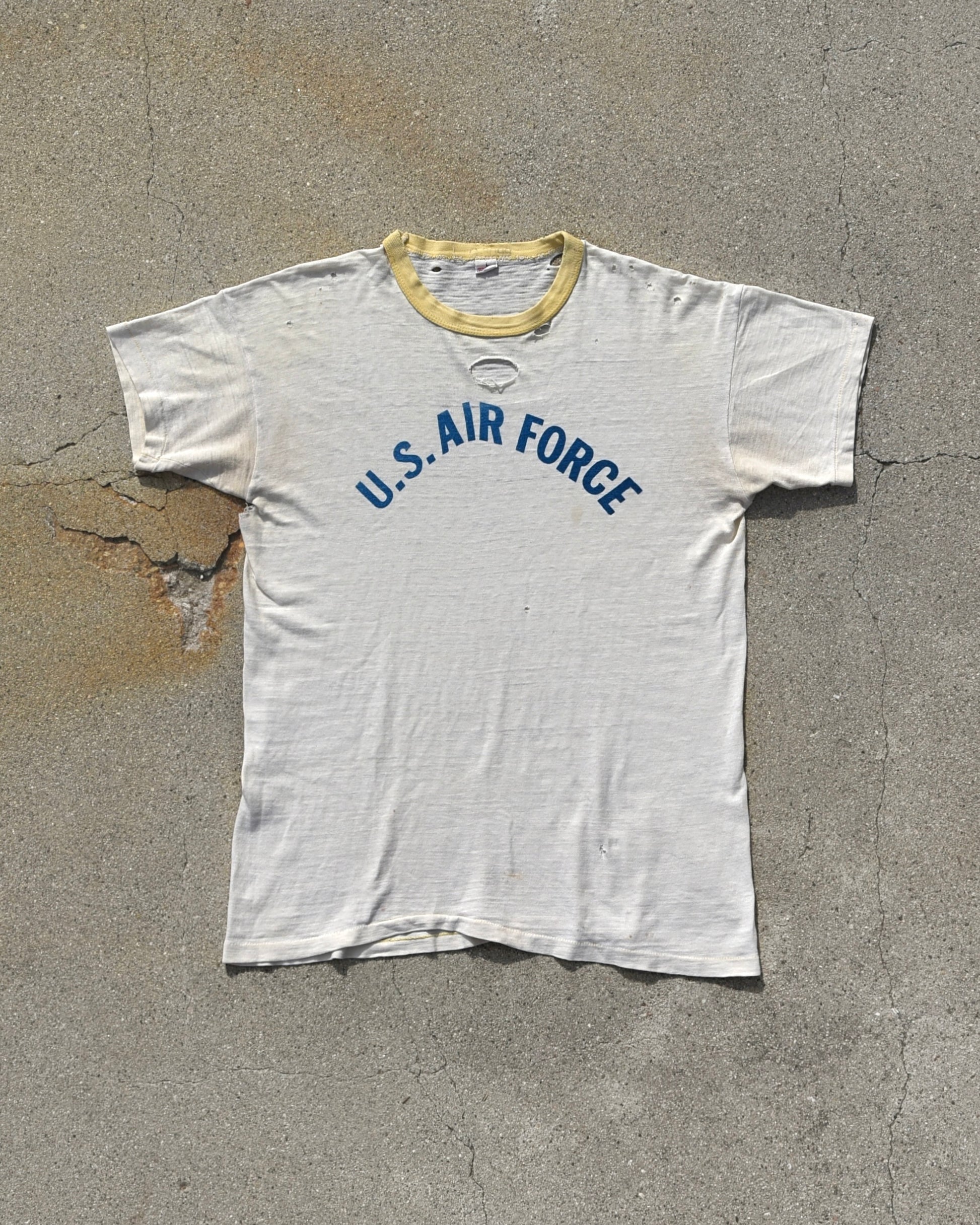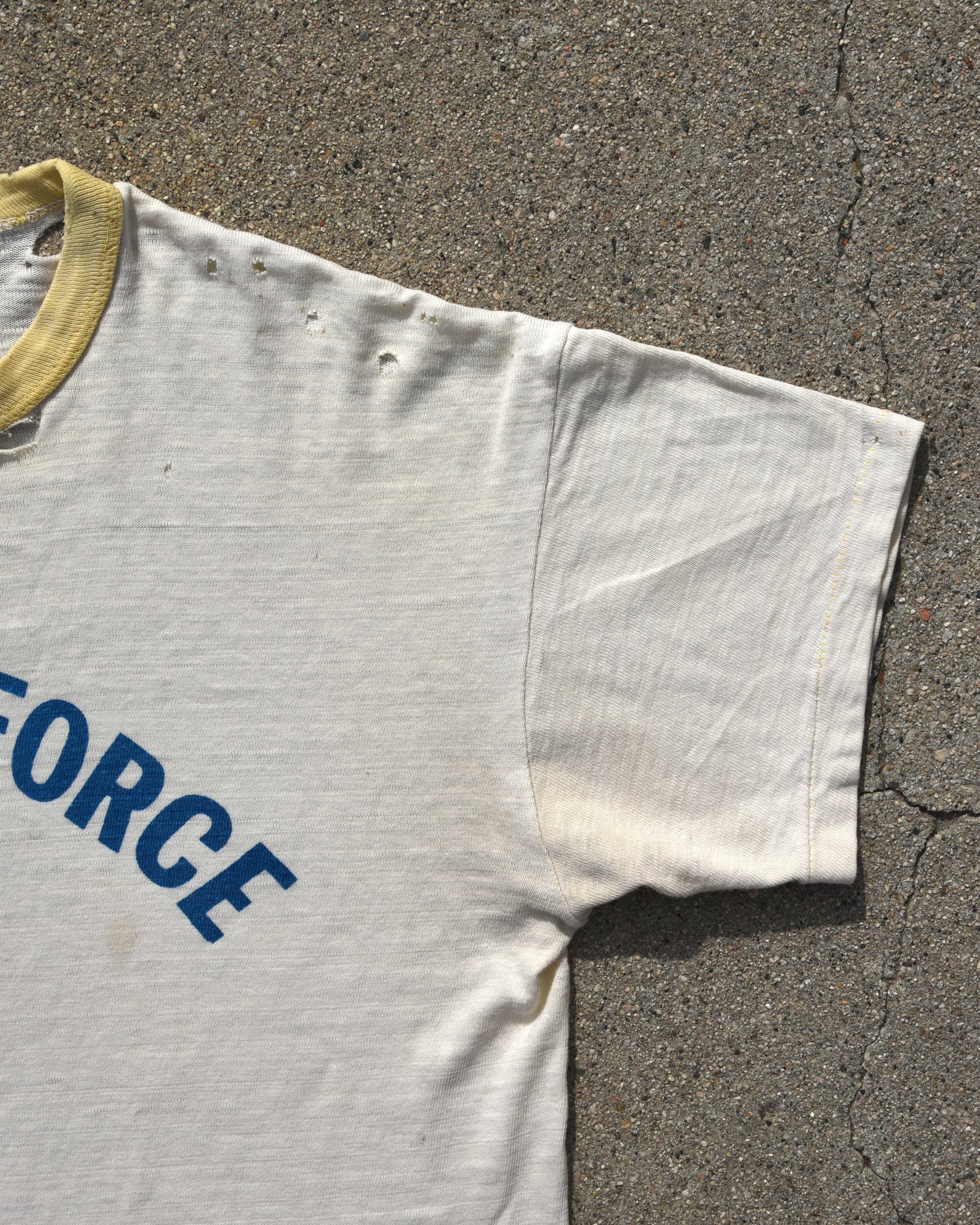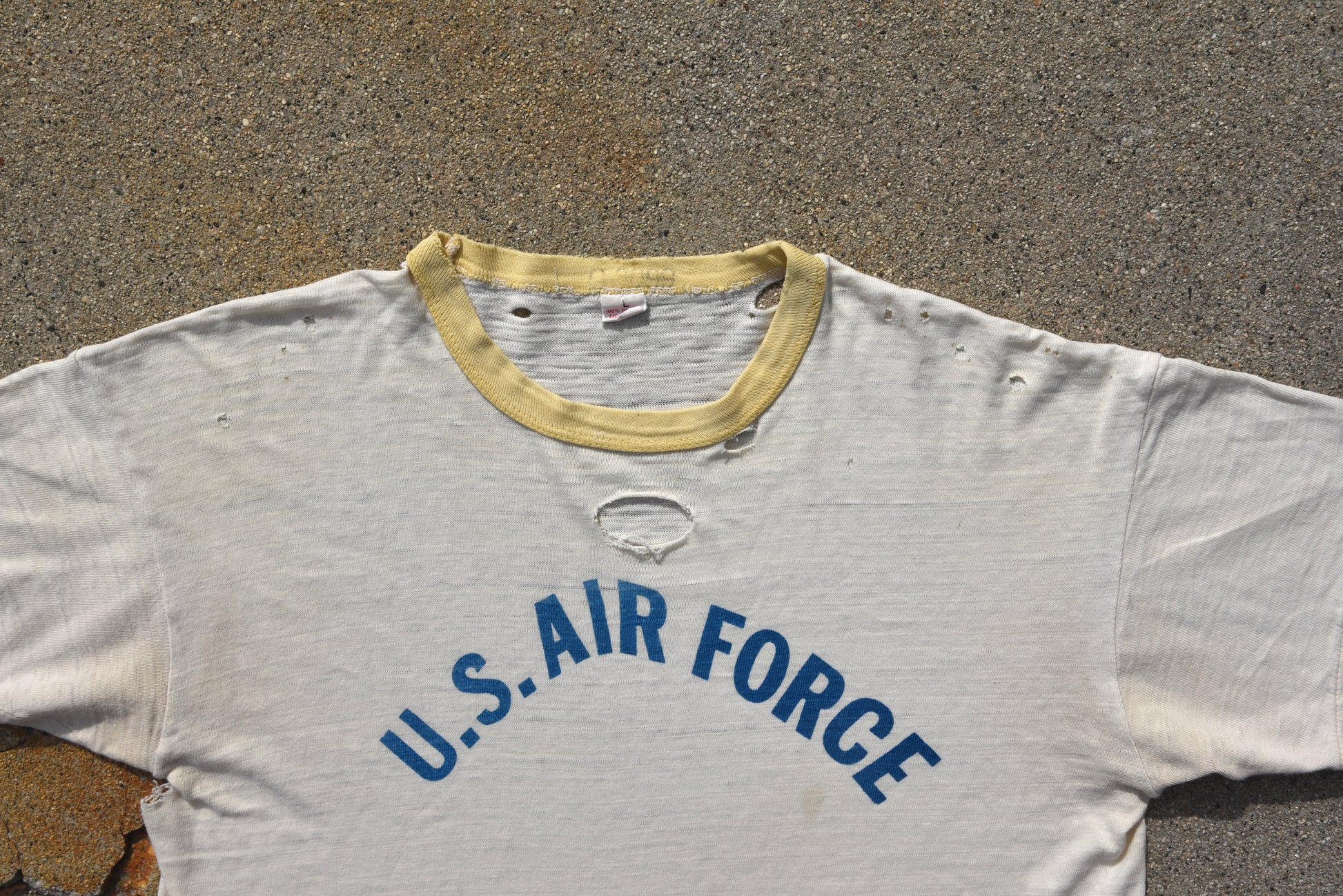 True vintage 1960s U.S. Air Force Tshirt. Thrashed and sun faded heavily all throughout. Same vintage tee worn by Angelina Jolie in Girl Interrupted. Tagged size large