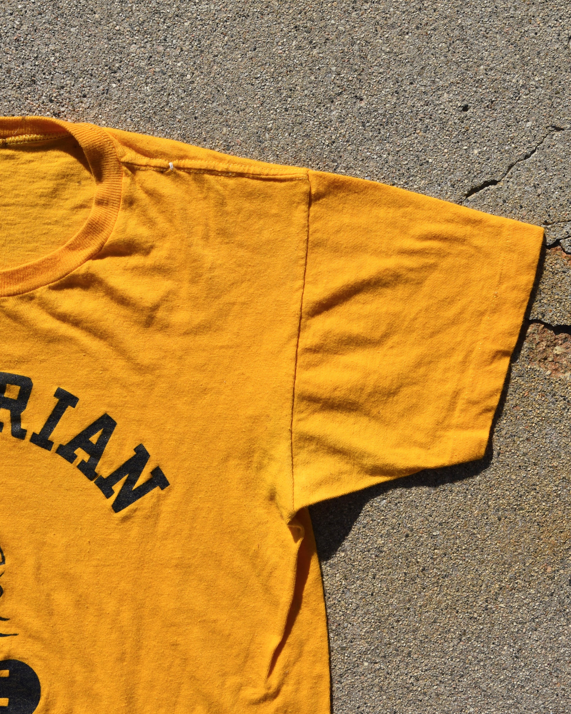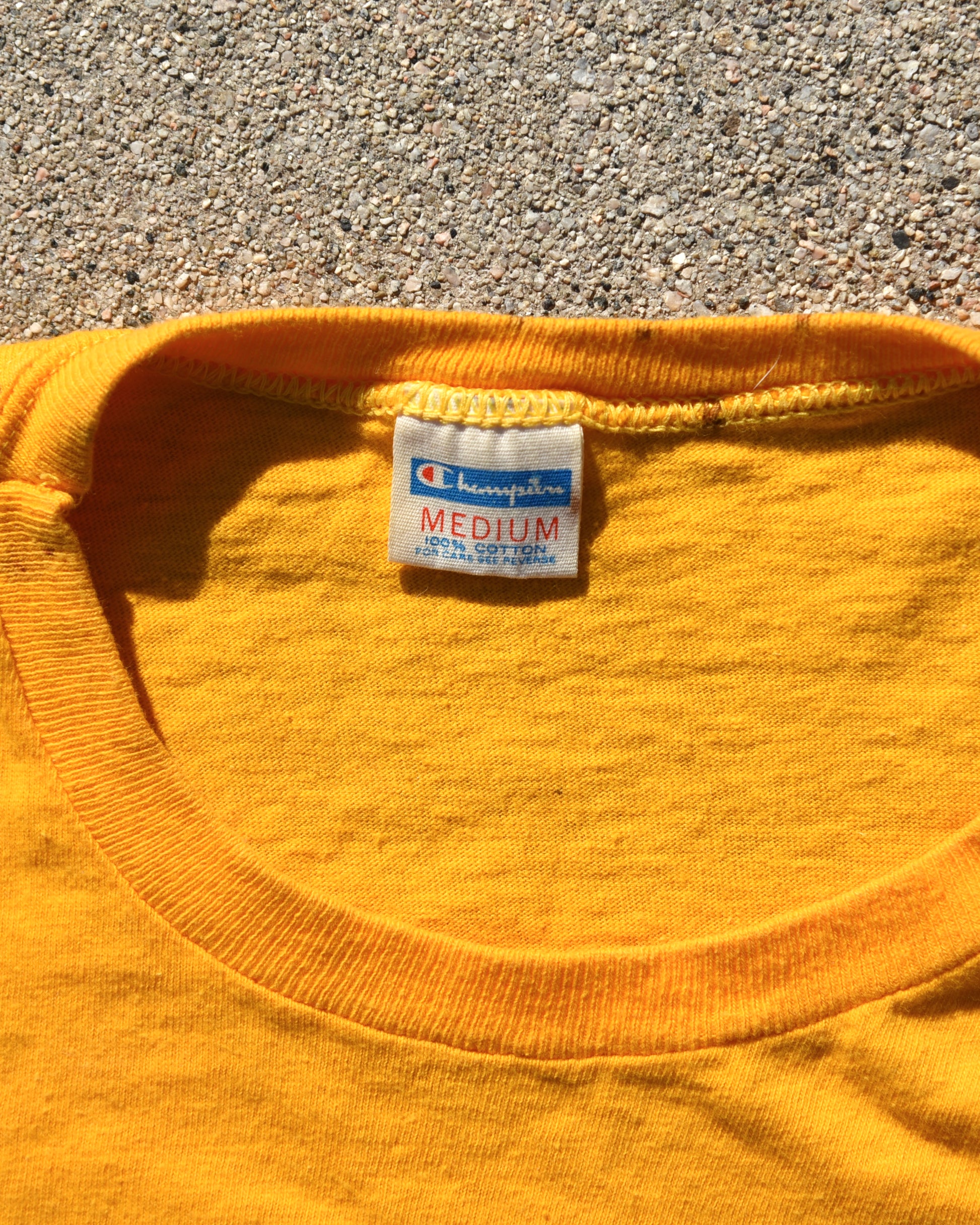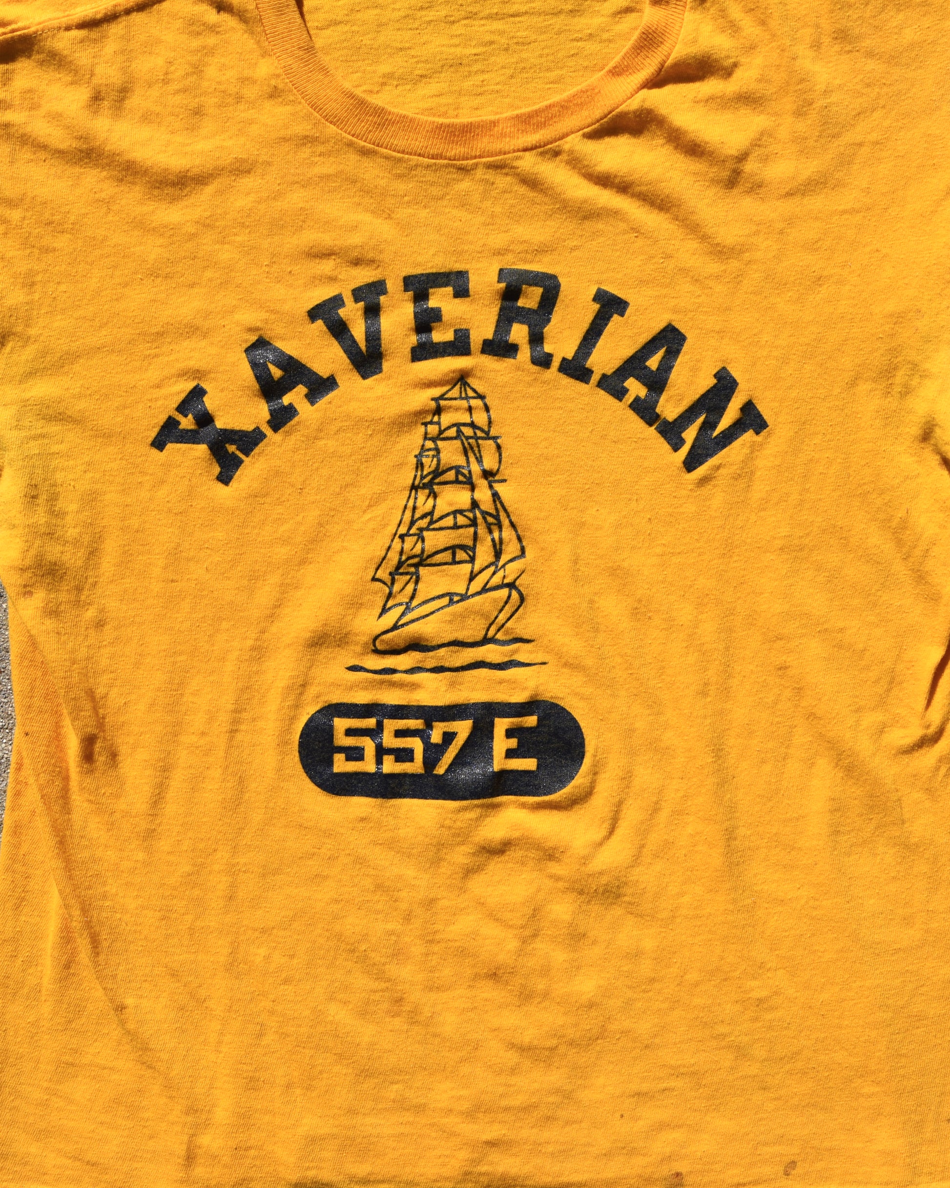 Vintage 1970s Champion Xaverian Phys Ed Tshirt. Has clear signs of wear from age all throughout but no major holes. On original champion 70s tag. Tagged size medium