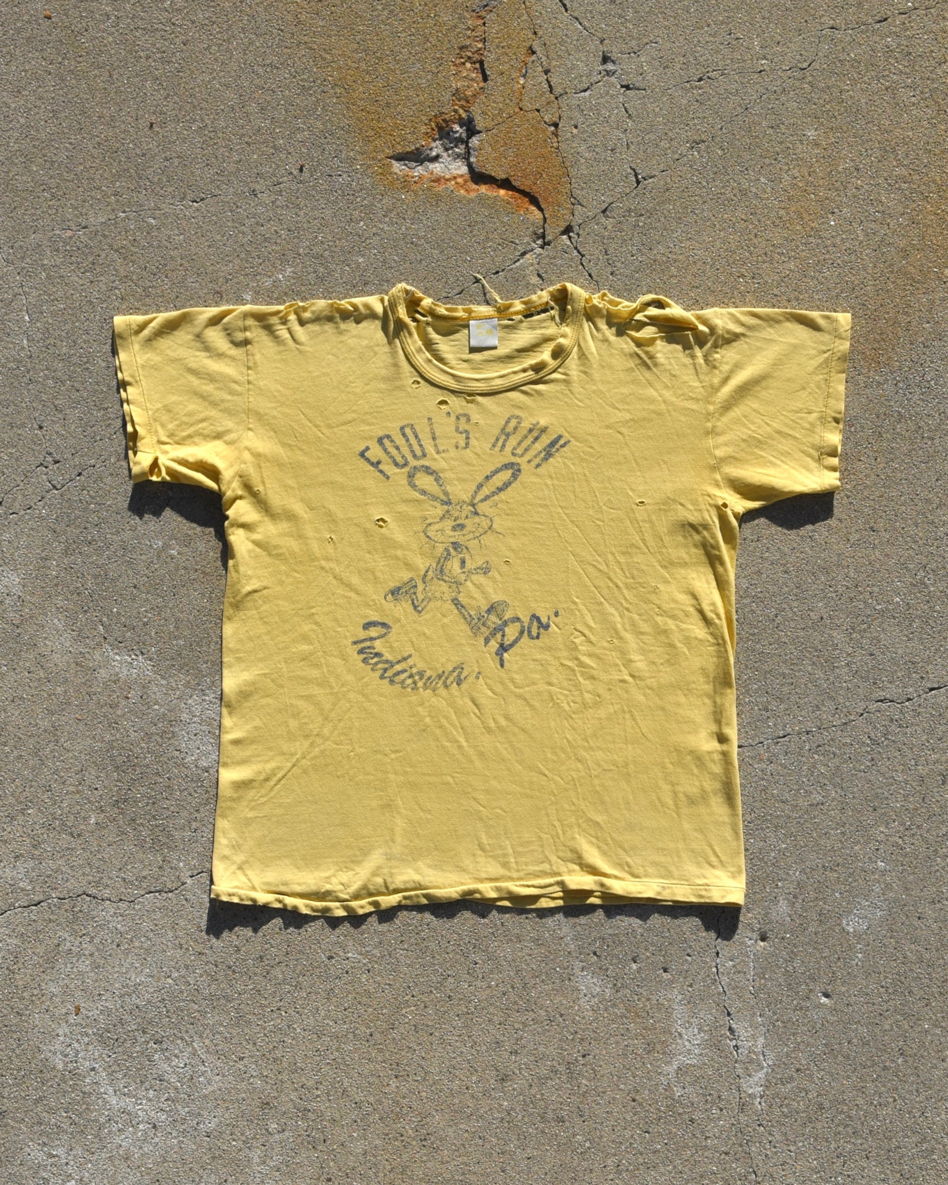 True vintage 1970s Fool’s Run Indiana tshirt. Thrashed and faded perfectly all throughout. On a Russell Athletic tag. Fits like a medium or large