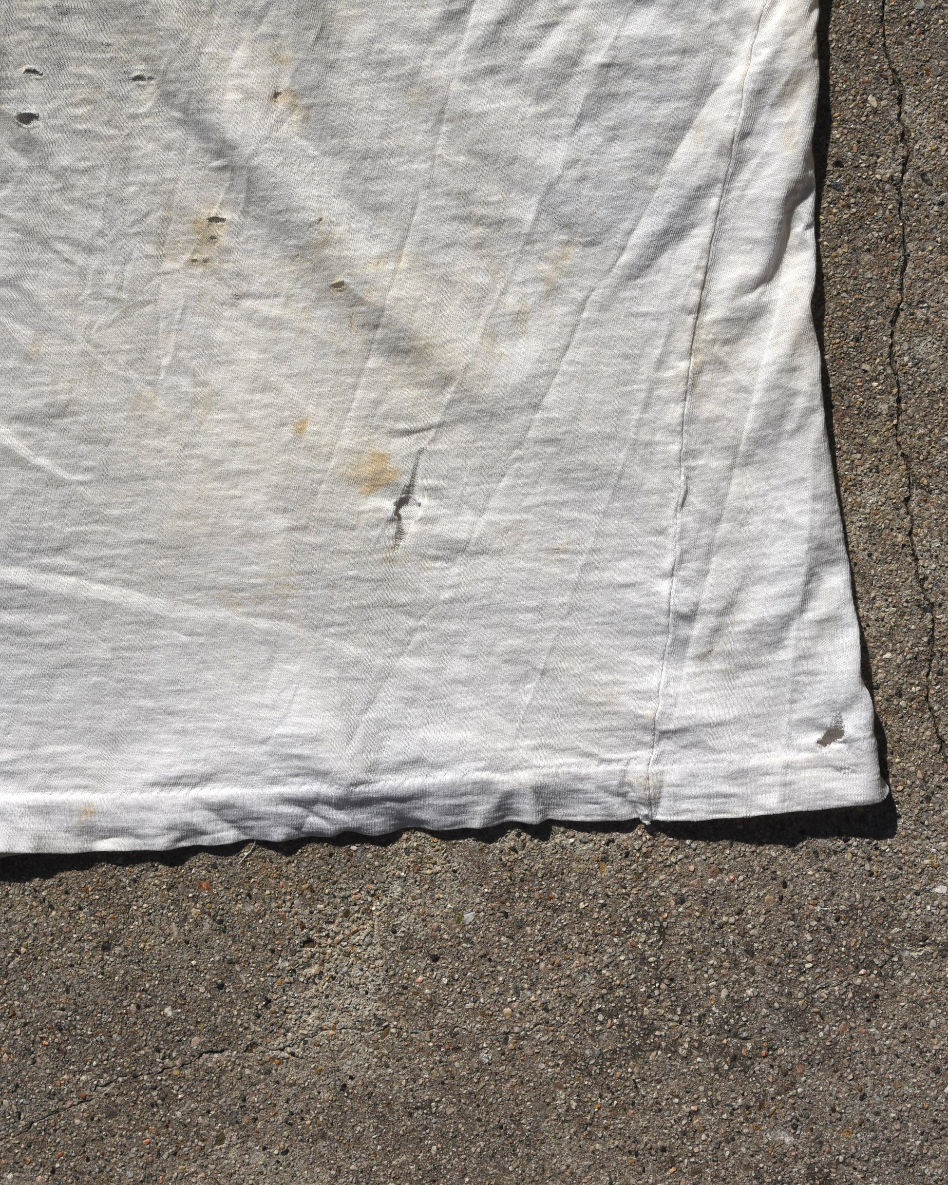 Absolutely thrashed 1980s Berlin Tshirt. One of the coolest graphics and back hits I’ve seen in a while. This tee is very very thrashed with huge holes in the back and smaller holes all throughout. Great if you like that look. No tag, fits like a very boxy large
