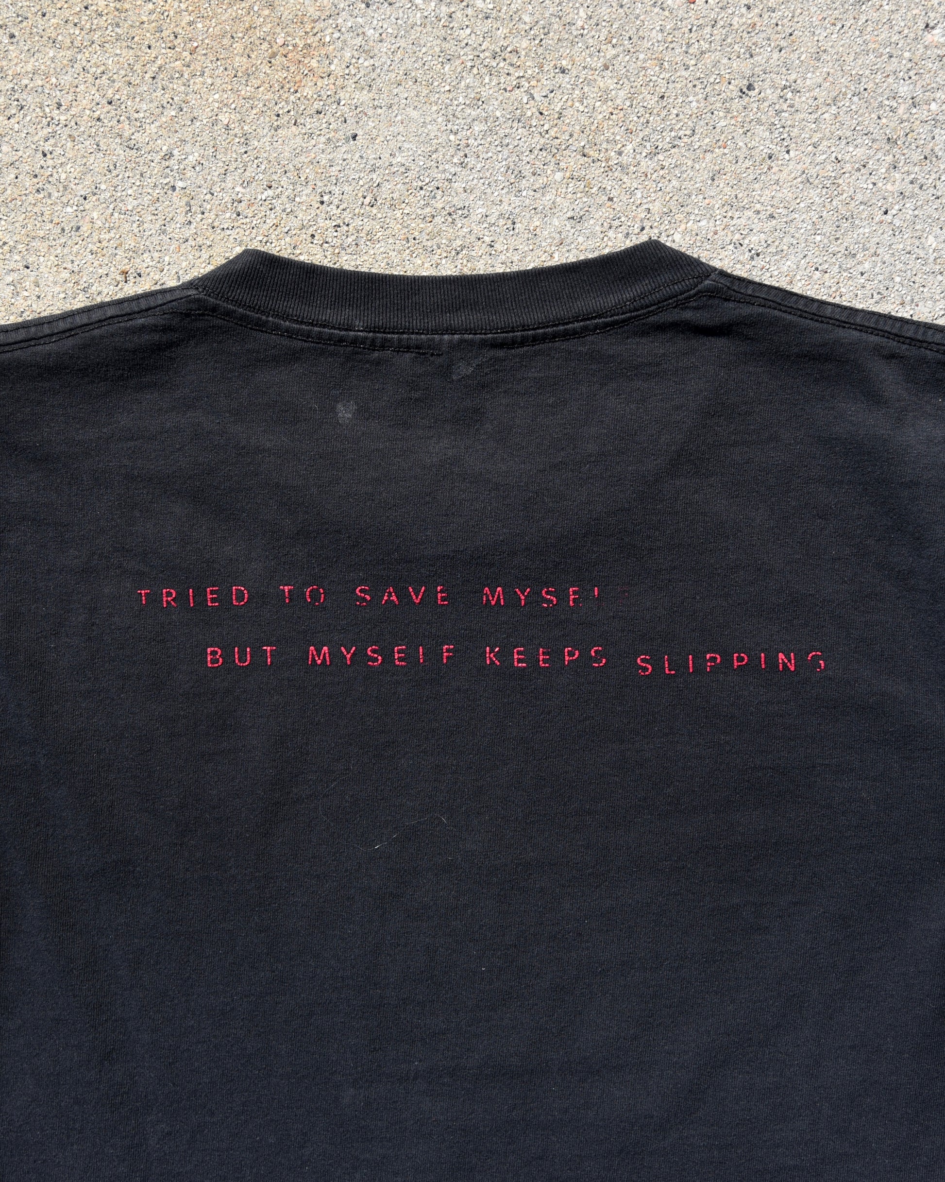 Nine Inch Nails vintage 1990s Tried to Save Myself but Myself Keeps Slipping Tshirt. Original official tour tee. Single stitch. No tag. Fits like a medium. Has signs of wear and fading throughout