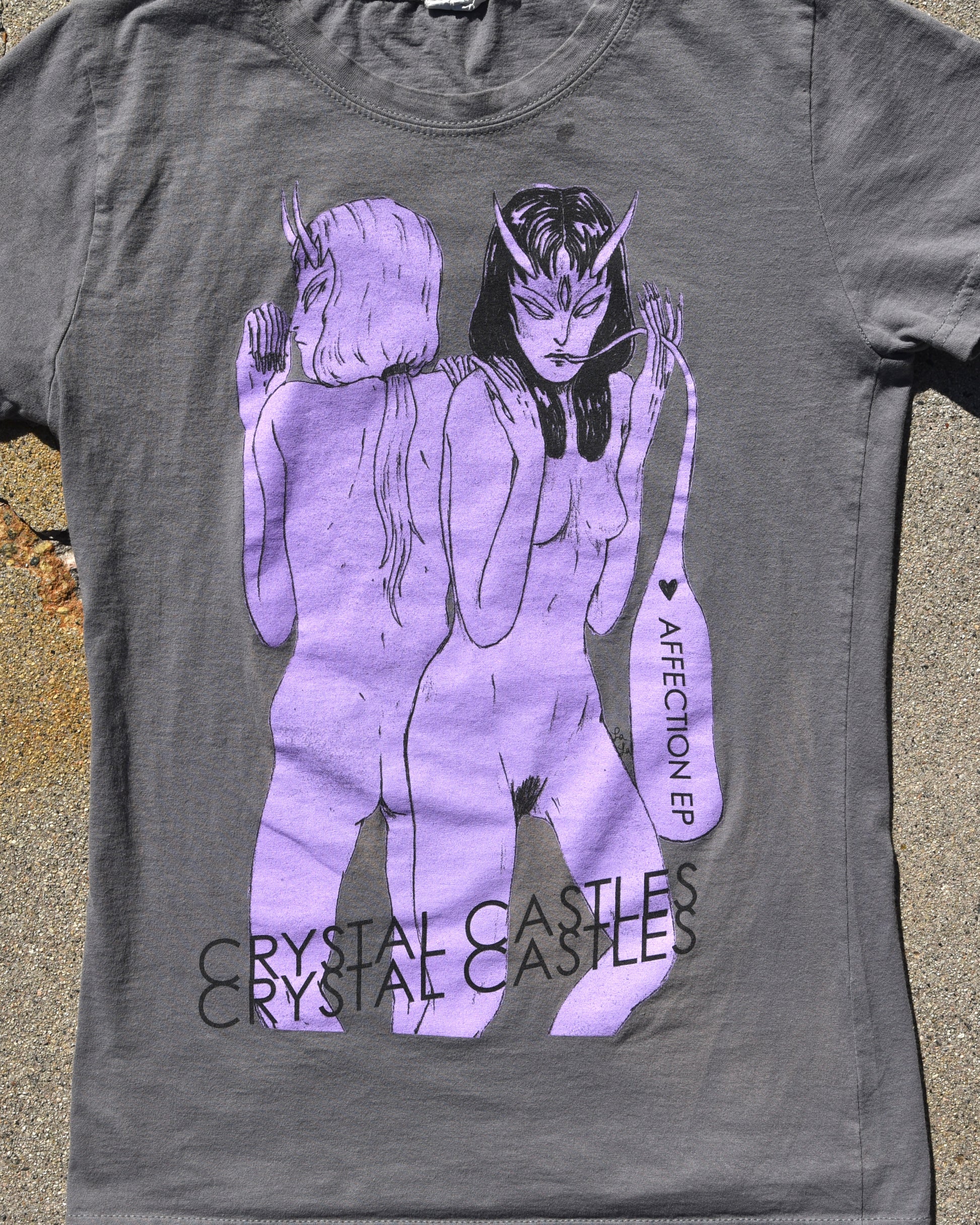 Crystal Castles Affection EP Tshirt. Official bay island tee. From the Affection EP that was scrapped after the group disbanded. Very rare tshirt. Tagged size large. This is a women’s tshirt