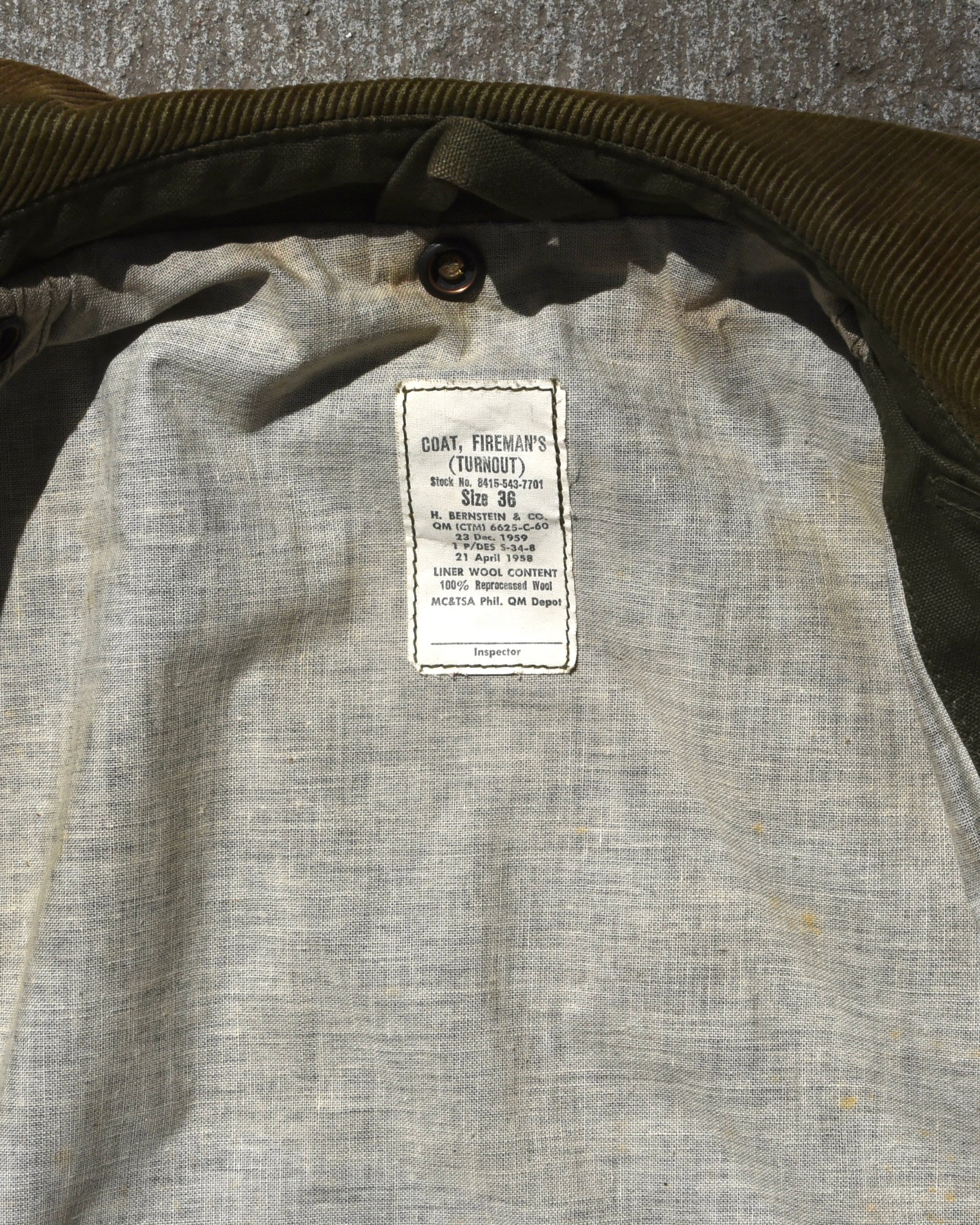 Vintage fireman’s turnout coat. True vintage jacket from 1958. This has been upcycled into a modern fitting jacket. All original parts and fire clasps are in tact. Fits like a boxy medium or large. This is a personal piece, not in a rush to sell