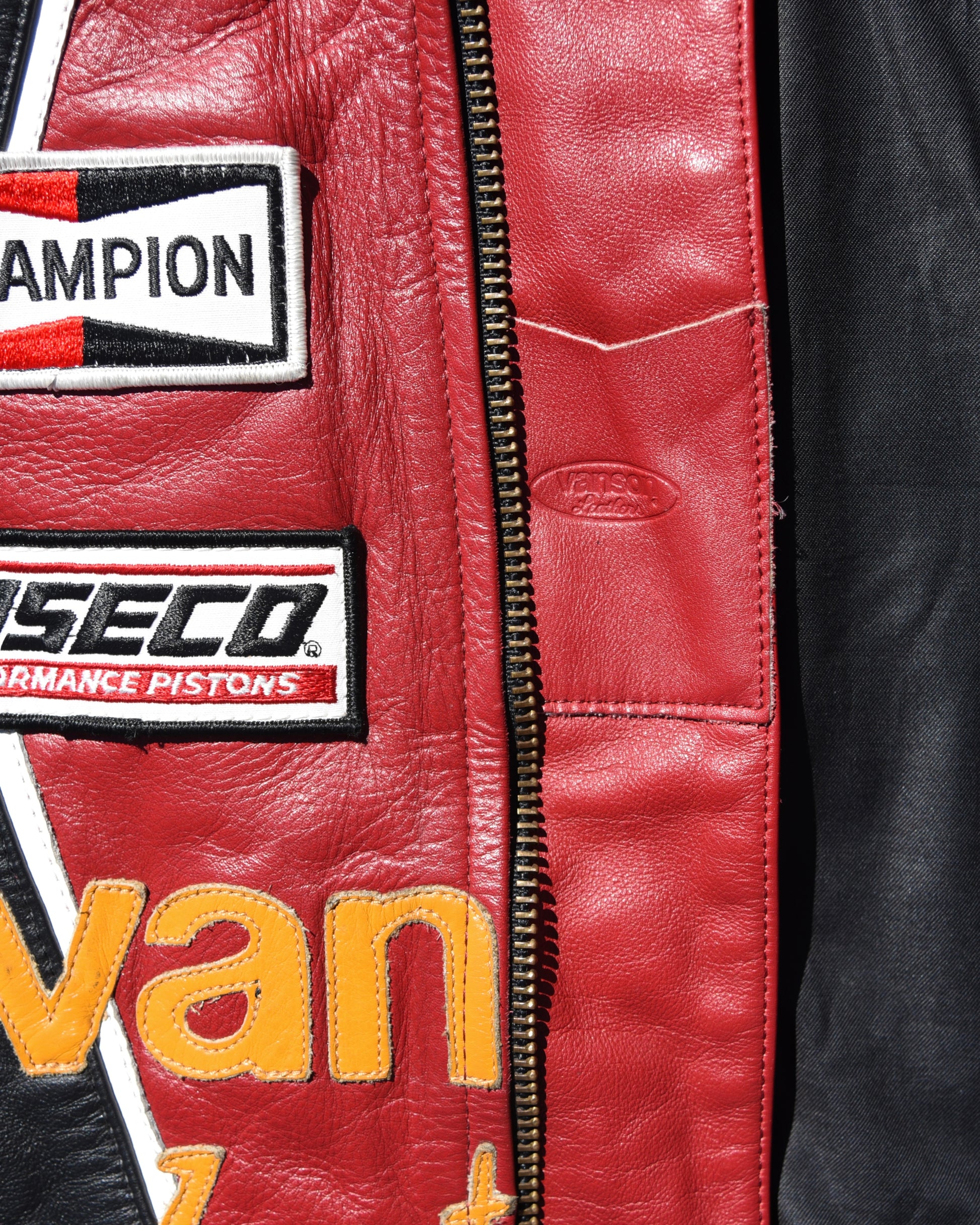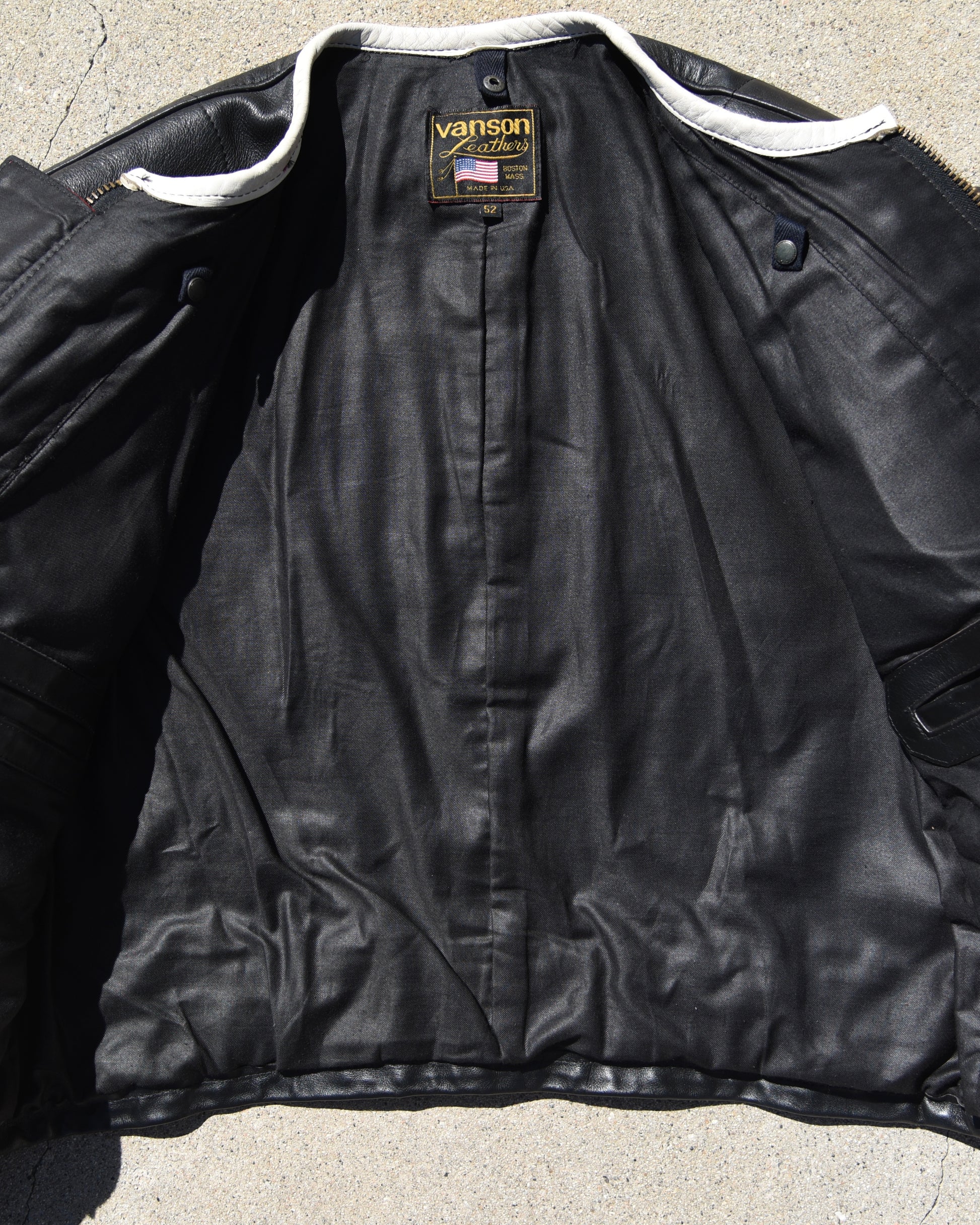 Vanson One Star Racing Leather Jacket. In rare larger size 52. Good condition overall with minor signs of wear as shown in pics. Leather and inside liner both in great condition